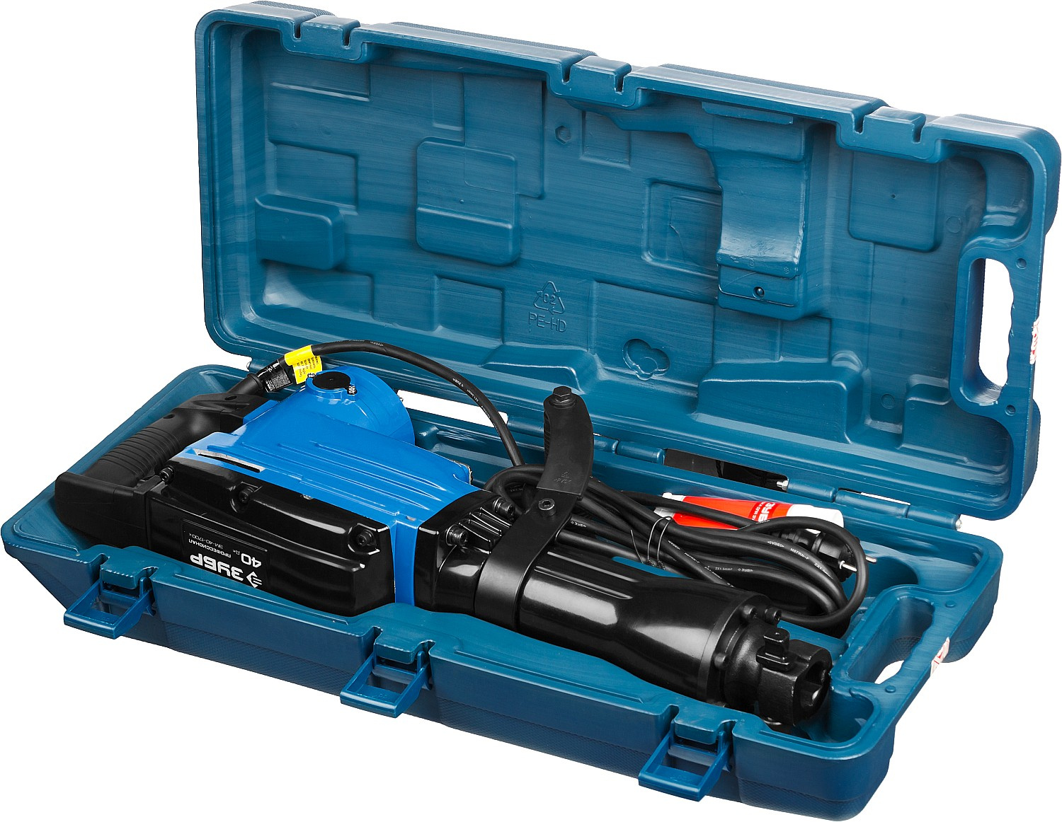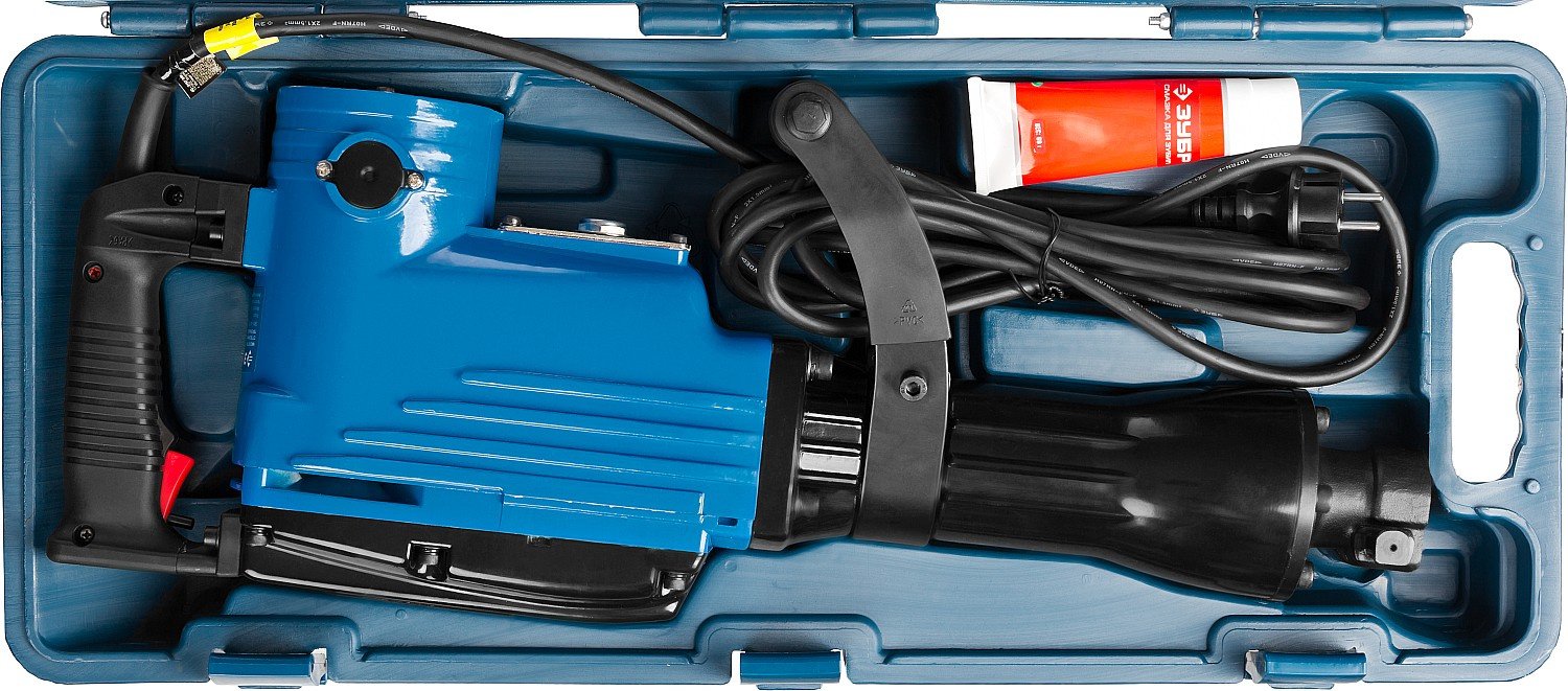 Молоток отбойный, рукоятка дополнительная, ключ - 3 шт., смазка для бура, кейс, руководство по эксплуатации.