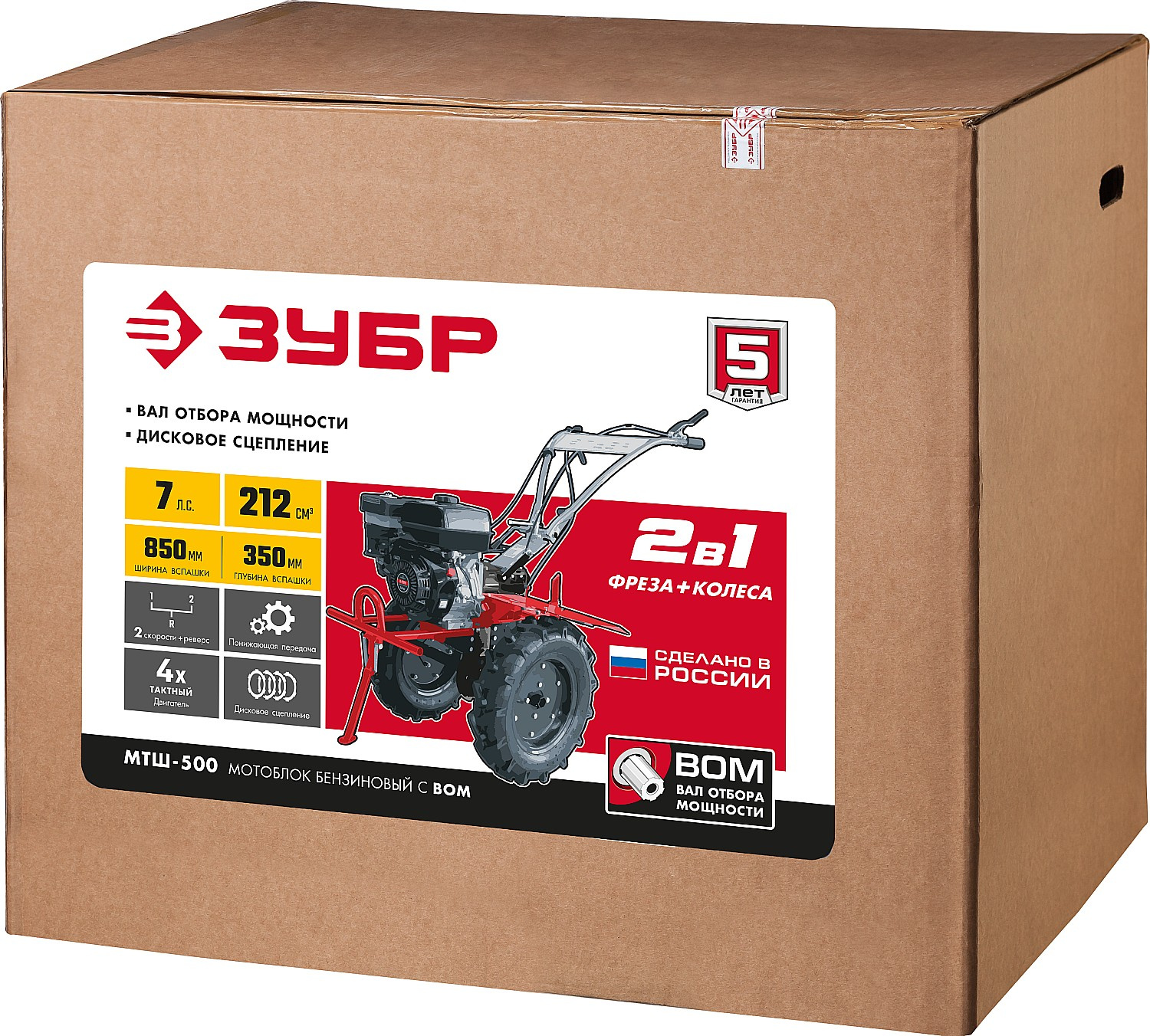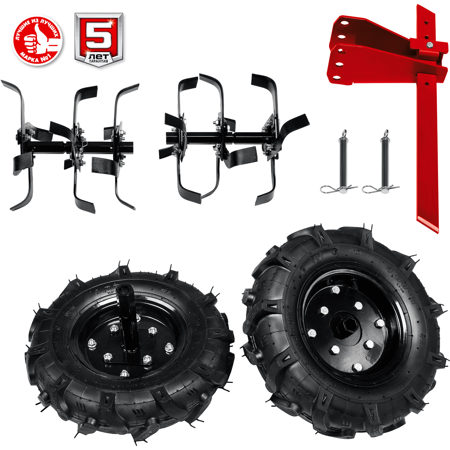 Мотоблок, фрезы (6 групп по 4 ножа), колесо - 2 шт., сошник, сцепка сошника, комплект крепежа, руководство по эксплуатации.