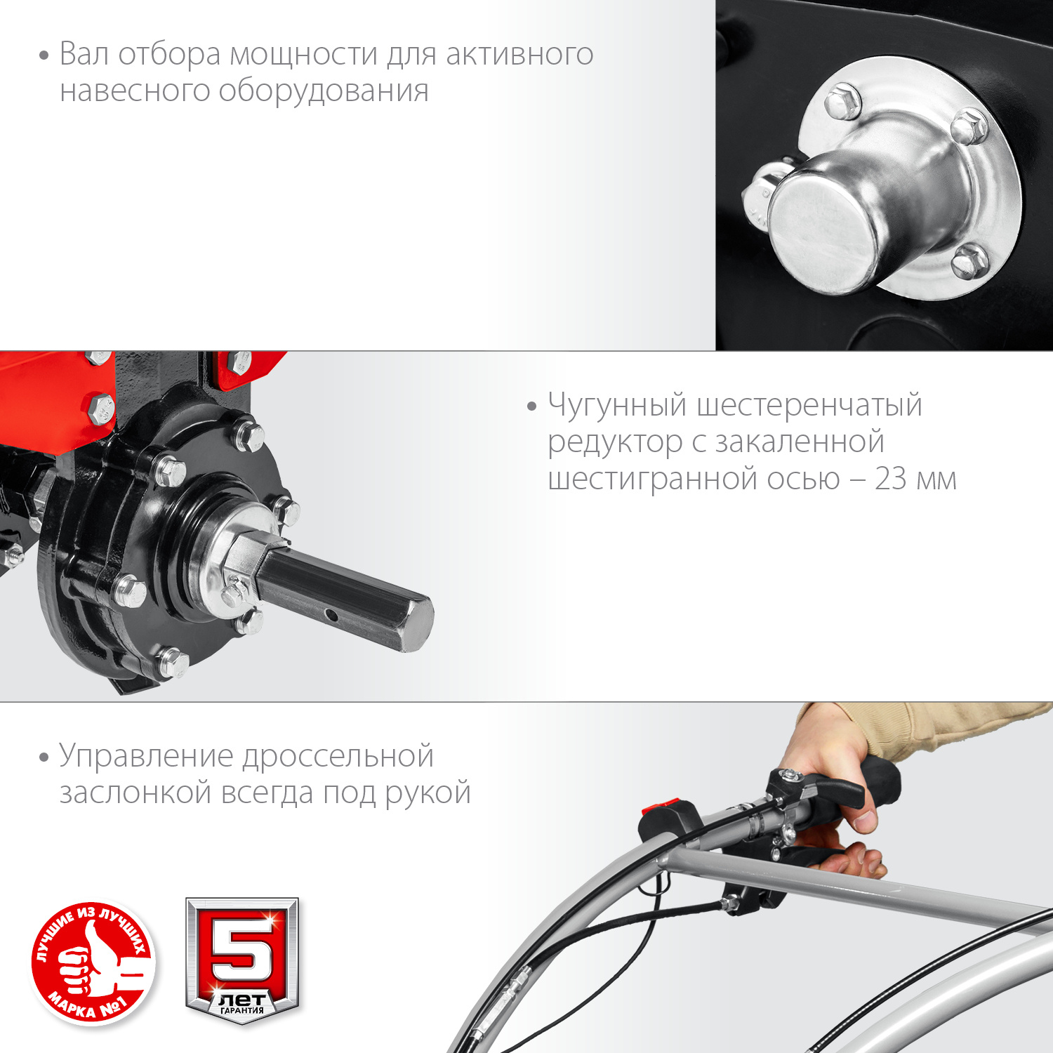 Мощный бензиновый мотоблок предназначен для рыхления и культивирования, а при использовании дополнительного навесного оборудования спектр применения мотоблока значительно расширится. Модель предлагает отличное сочетание высокой производительности, управляемости и устойчивости.