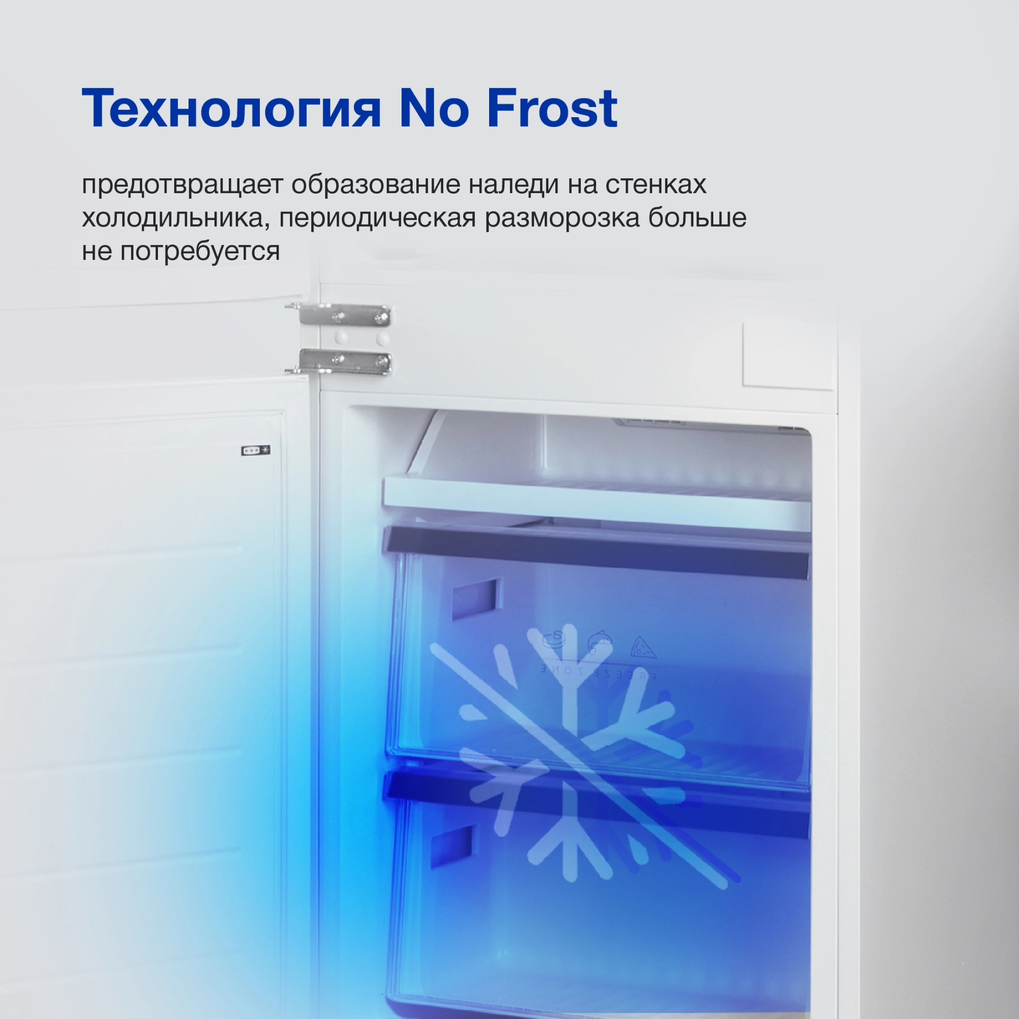 Система размораживания No Frost предотвращает образование льда внутри холодильной и морозильной камер. Это избавляет от необходимости регулярно размораживать холодильник вручную.
