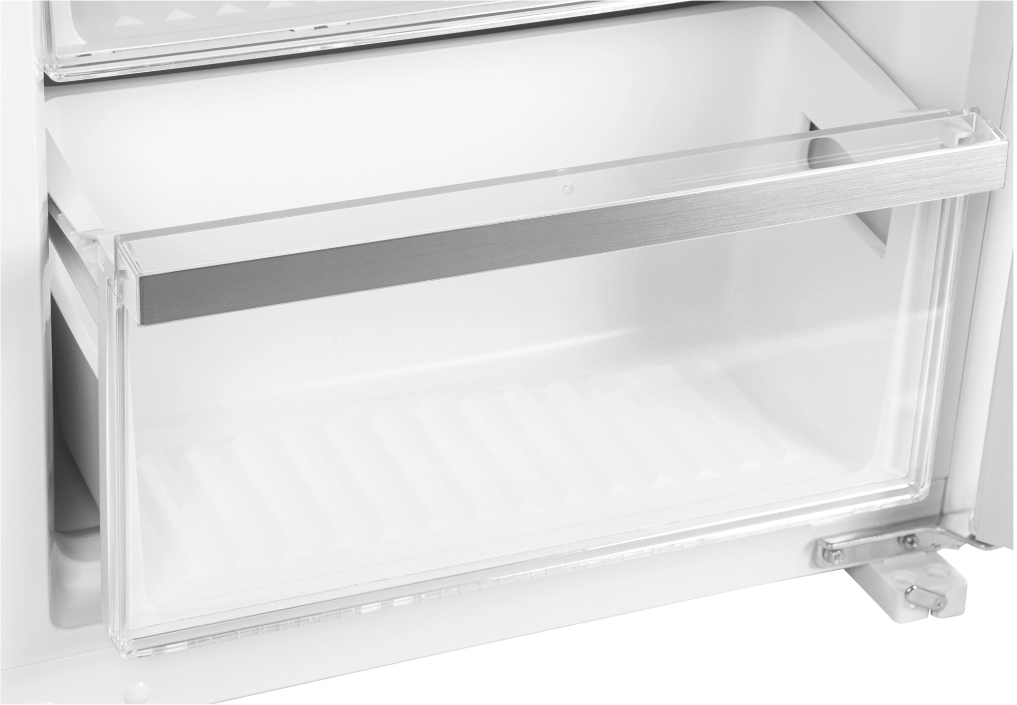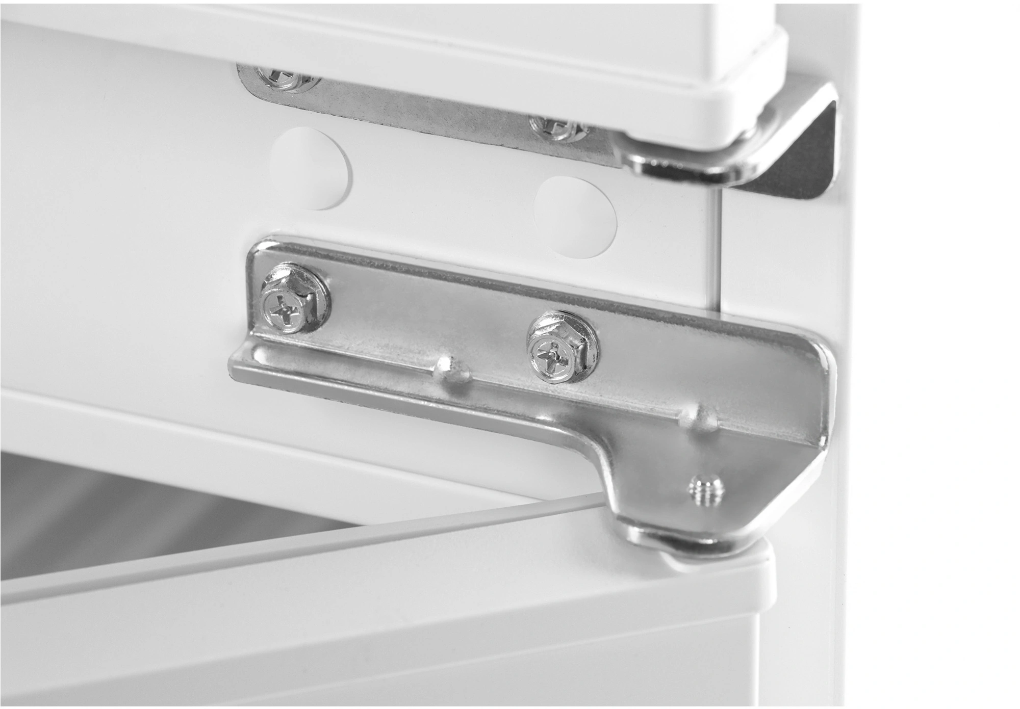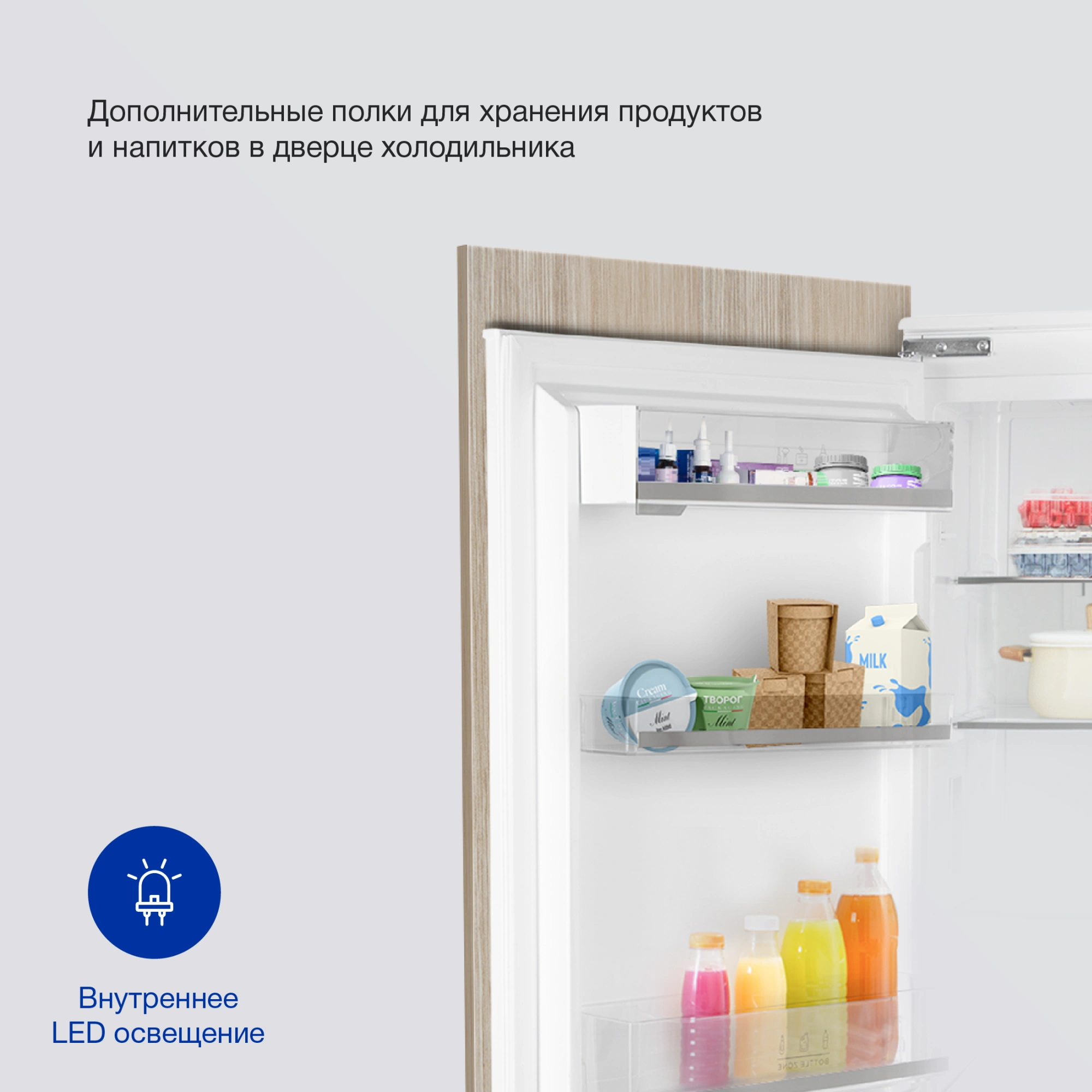 Дверцы холодильника можно перевешивать для удобства использования. Холодильная камера оснащена полками, которые можно регулировать по высоте, чтобы адаптировать пространство под свои нужды.