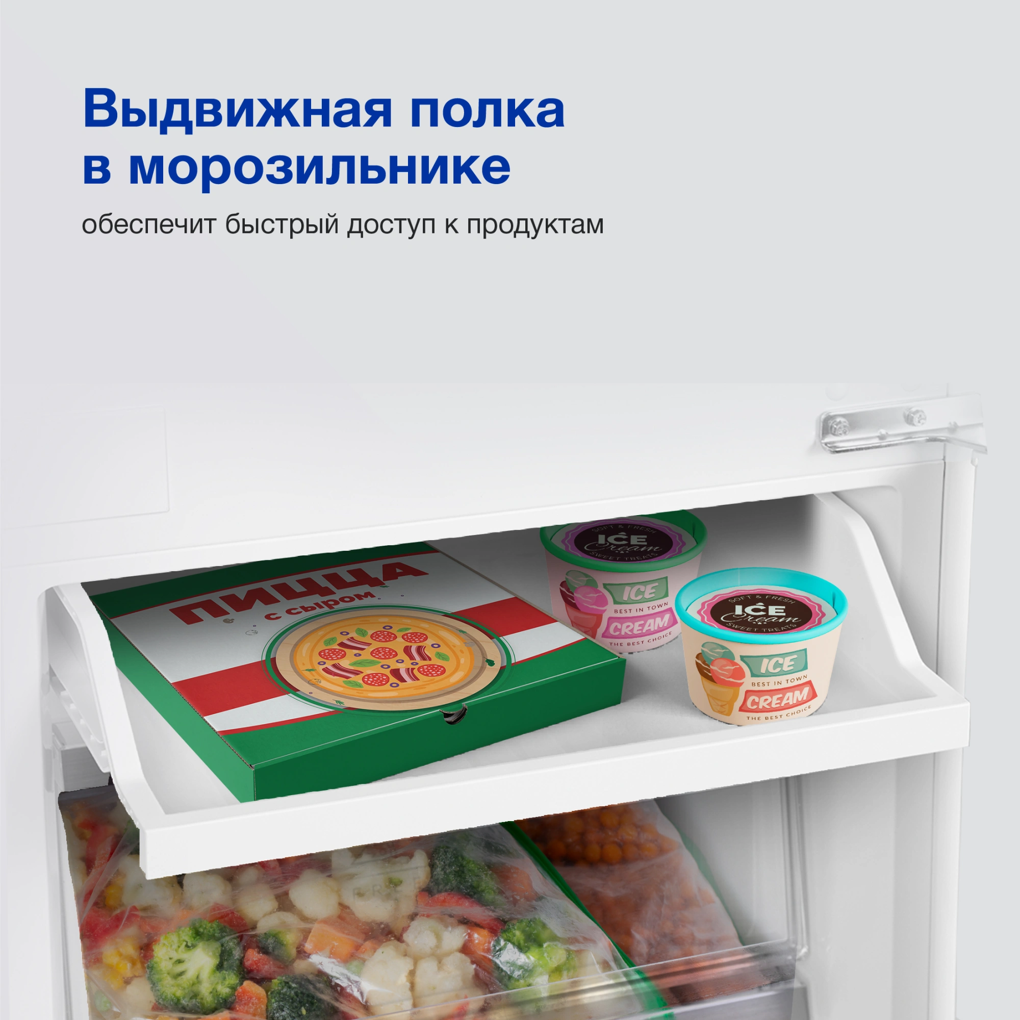Класс энергопотребления А+ обеспечивает экономичное использование электроэнергии. Уровень шума холодильника не превышает допустимых значений, что делает его комфортным для использования в жилых помещениях.