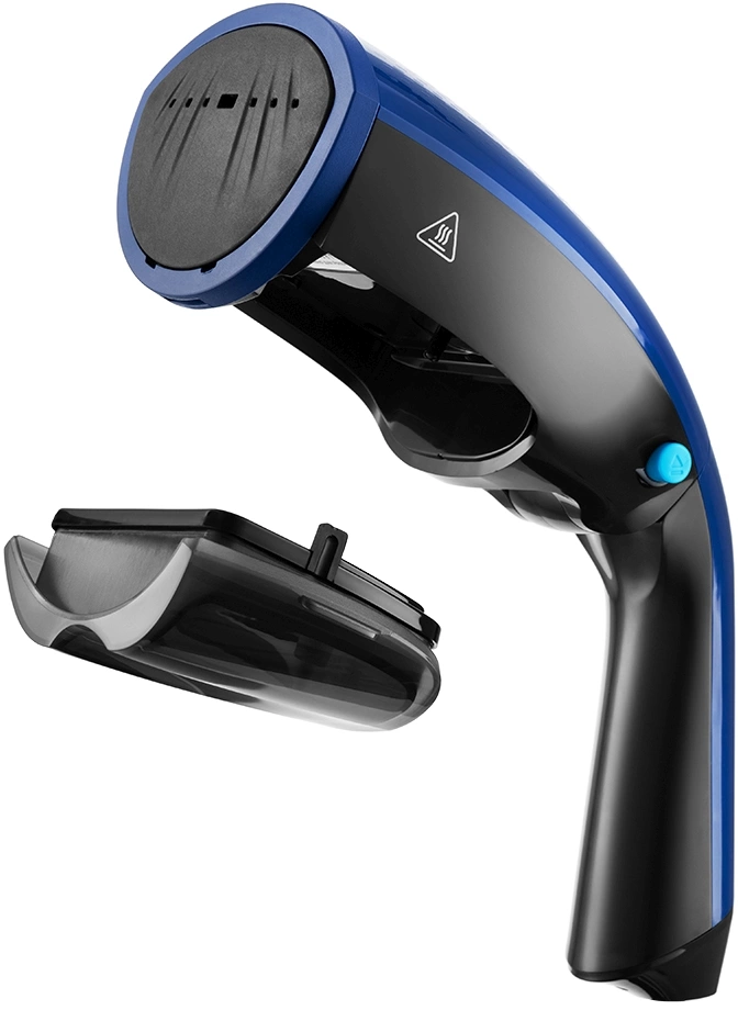 Ручка отпаривателя складывается для более удобного и компактного хранения - в таком положении устройство занимает меньше места. На отпаривателе расположена кнопка складывания ручки, позволяющая сдвинуть ручку к резервуару для воды.