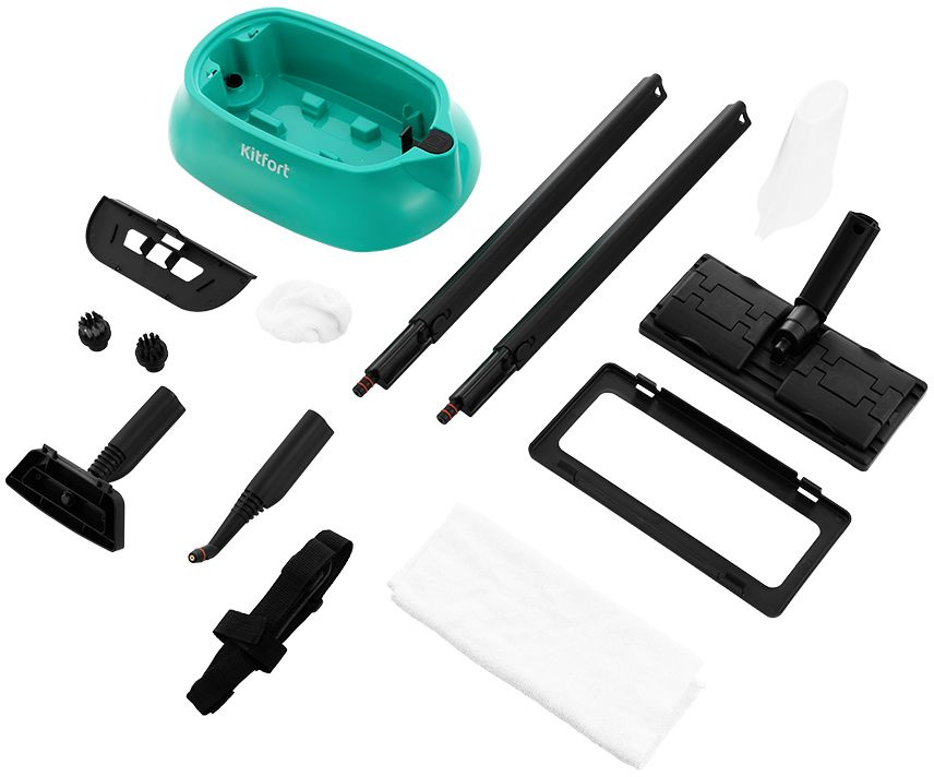В комплект, помимо различных насадок, входят также щётка для пола, тряпка, рамка для чистки ковров, удлинительные трубки, что делает КТ-9102 максимально универсальным устройством для очистки, глажки, дезинфекции самых разных поверхностей!
