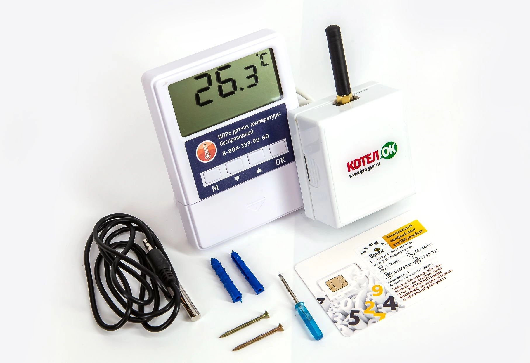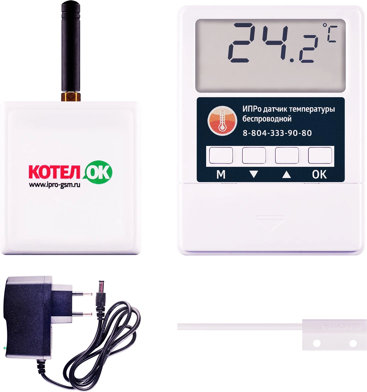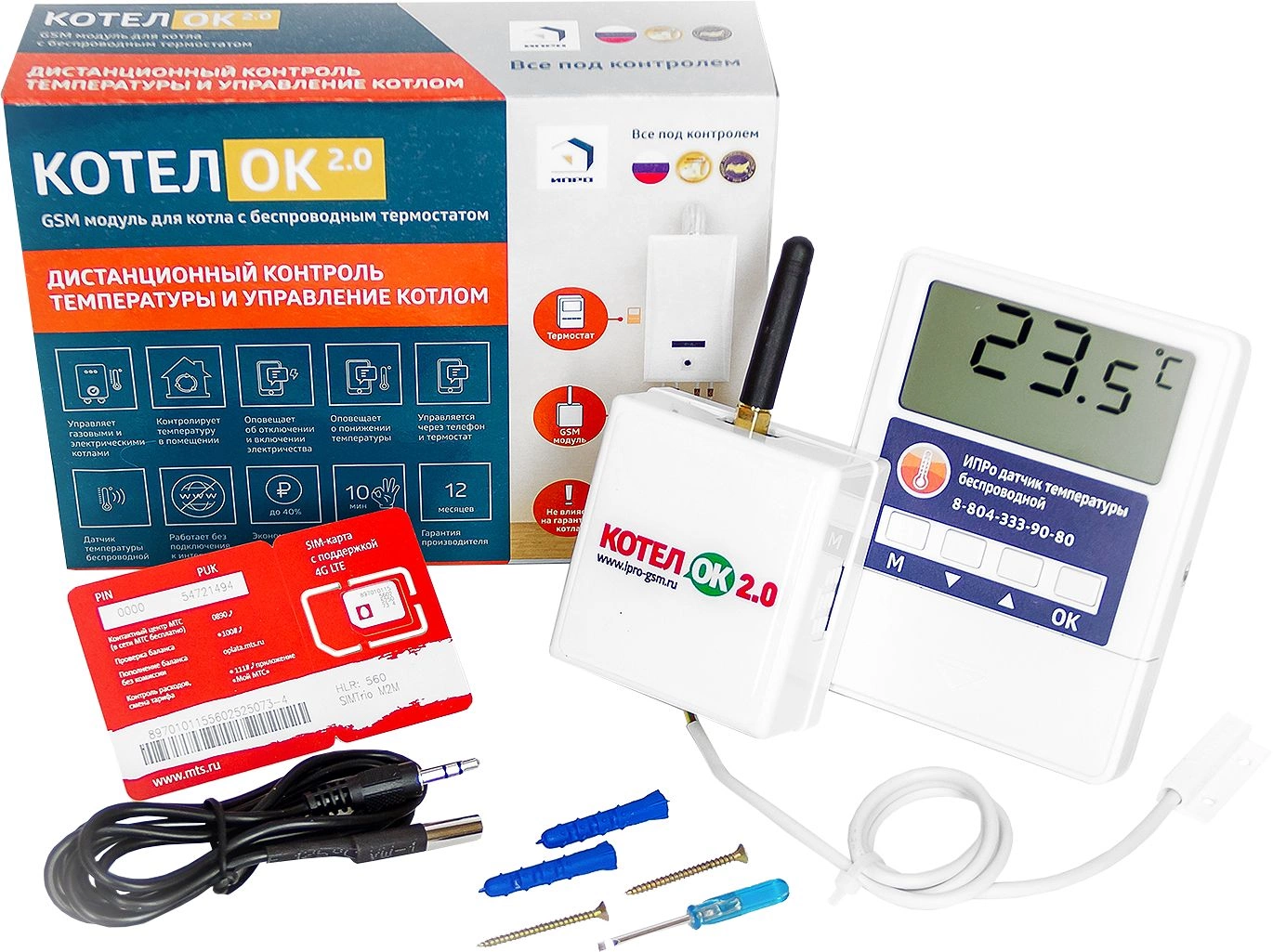 Котел.ОК 2.0 - прибор для дистанционного управления котлом и поддержания температуры в помещении. Упраление осуществляется через мобильное приложение, смс и беспроводной термодатчик. Подходит к любому котлу. Подключается вместо "внешнего термостата". Передача информации по GSM.