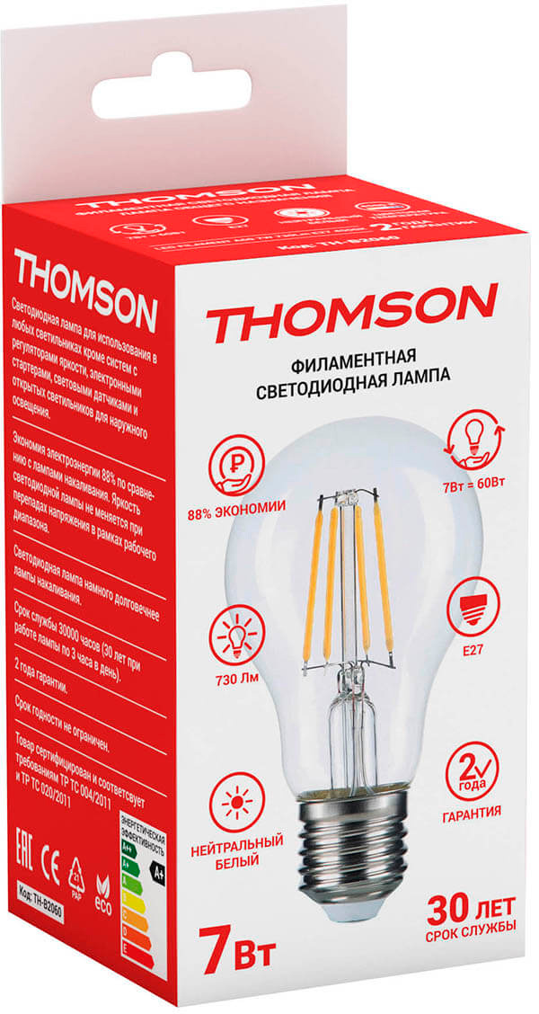 7Вт цок.:E27 груша 220B св.свеч.бел.нейт. A60 (уп...