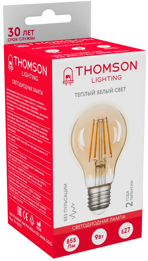 9Вт цок.:E27 груша 220B св.свеч.бел.теп. A60 (упа...