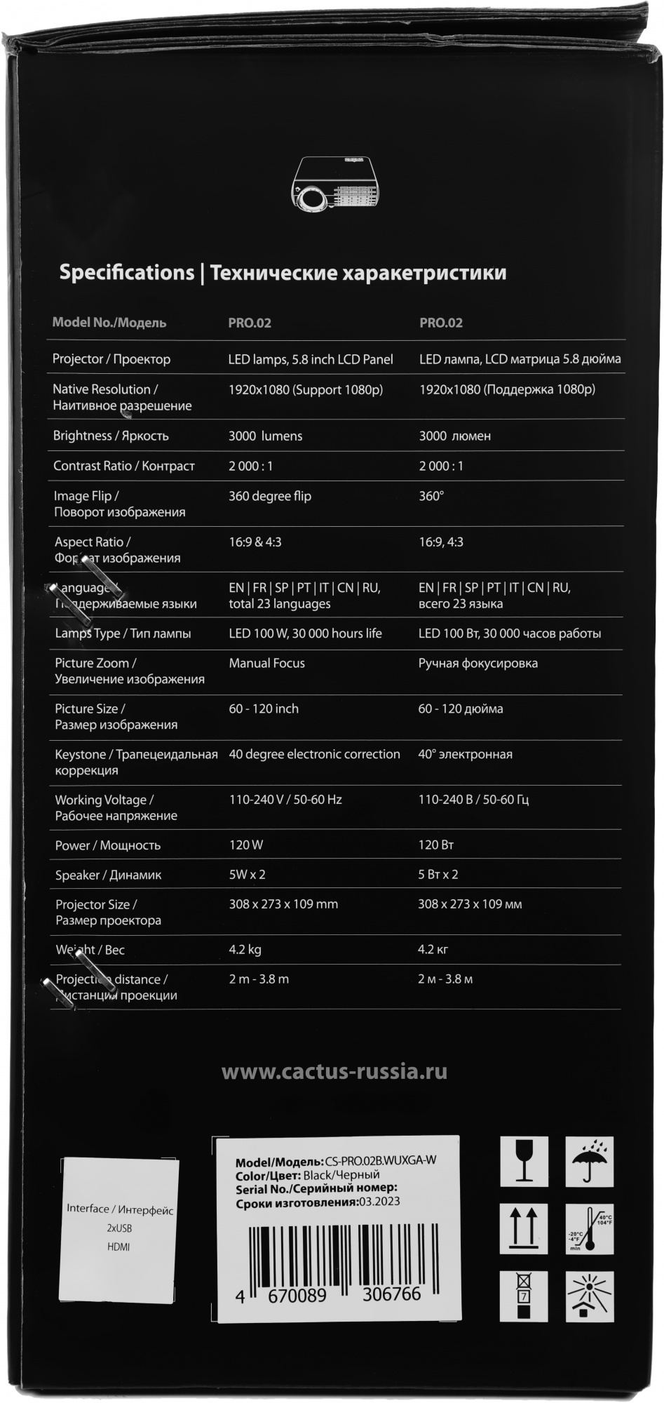 Актуальное наличие портов проектора указано в характеристиках и может отличаться от фотографии