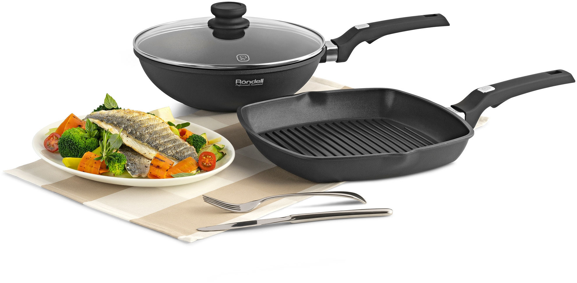 Преимущества: уникальное внешнее фактурное покрытие; Специальное внешнее термостойкое покрытие для легкого ухода; TriTitan® - трехслойное, износостойкое антипригарное покрытие на основе титана. Аксессуары: из бакелита, с покрытием Soft Touch с декоративной металической ставкой