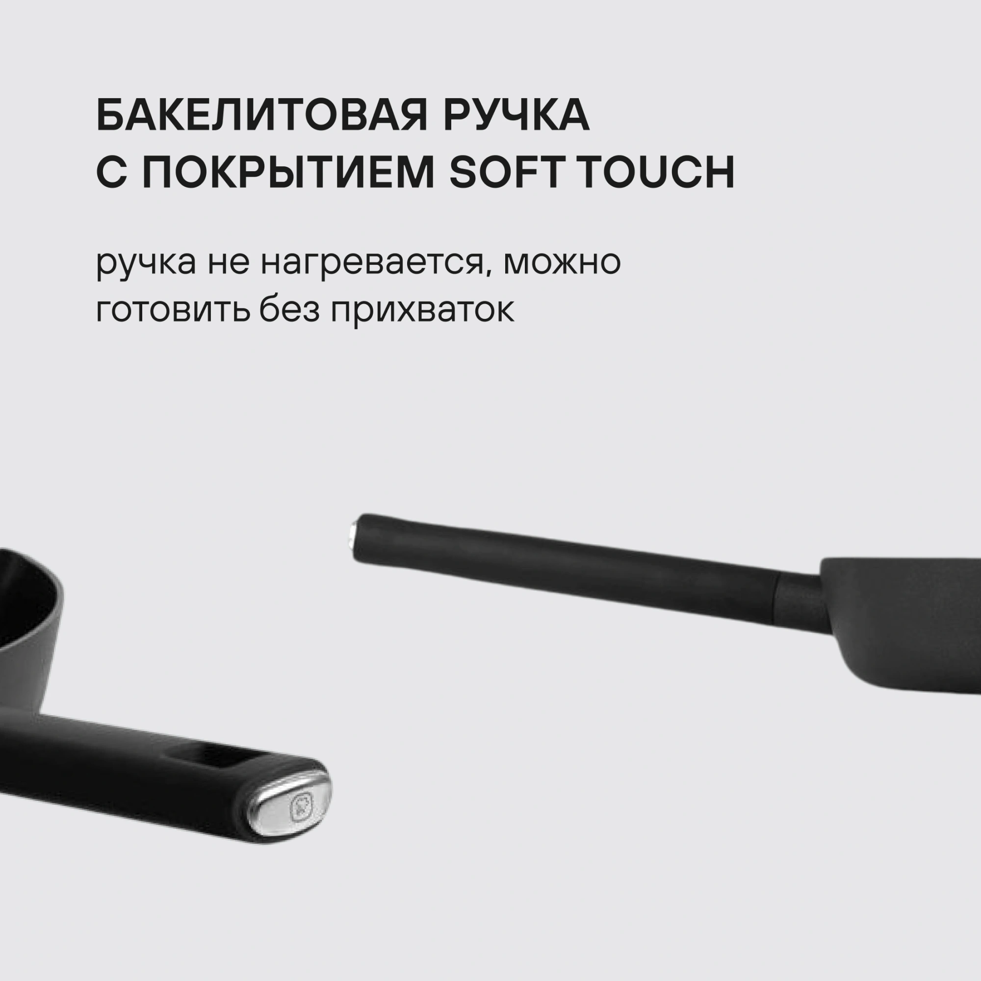 Аксессуары: из бакелита с покрытием Soft Touch. Преимущества: специальное внешнее термостойкое покрытие для легкого ухода; Xylan® Plus – двухслойное, долговечное антипригарное покрытие для интенсивного использования. Упаковка: картонный рукав.