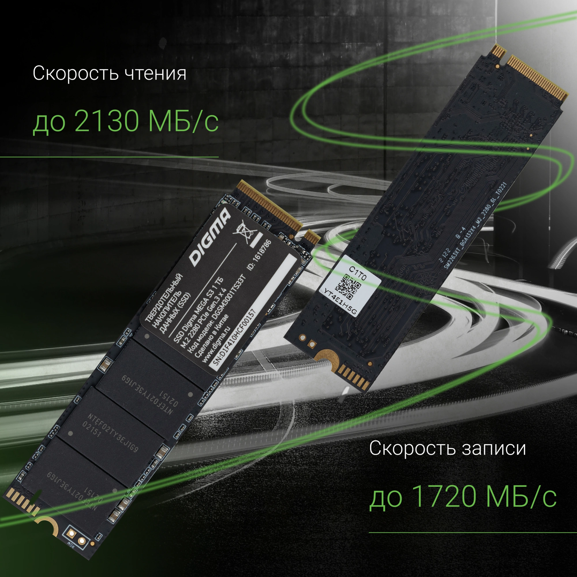 Контроллер Silicon Motion SM2263XT и чипы памяти 3D NAND TLC обеспечивают скорость передачи данных в режиме последовательного чтения до 2130 МБ/с, в режиме последовательной записи до 1720 МБ/с. Скорость произвольного чтения твердотельного диска достигает 160000 IOPS, записи – 130000 IOPS.
