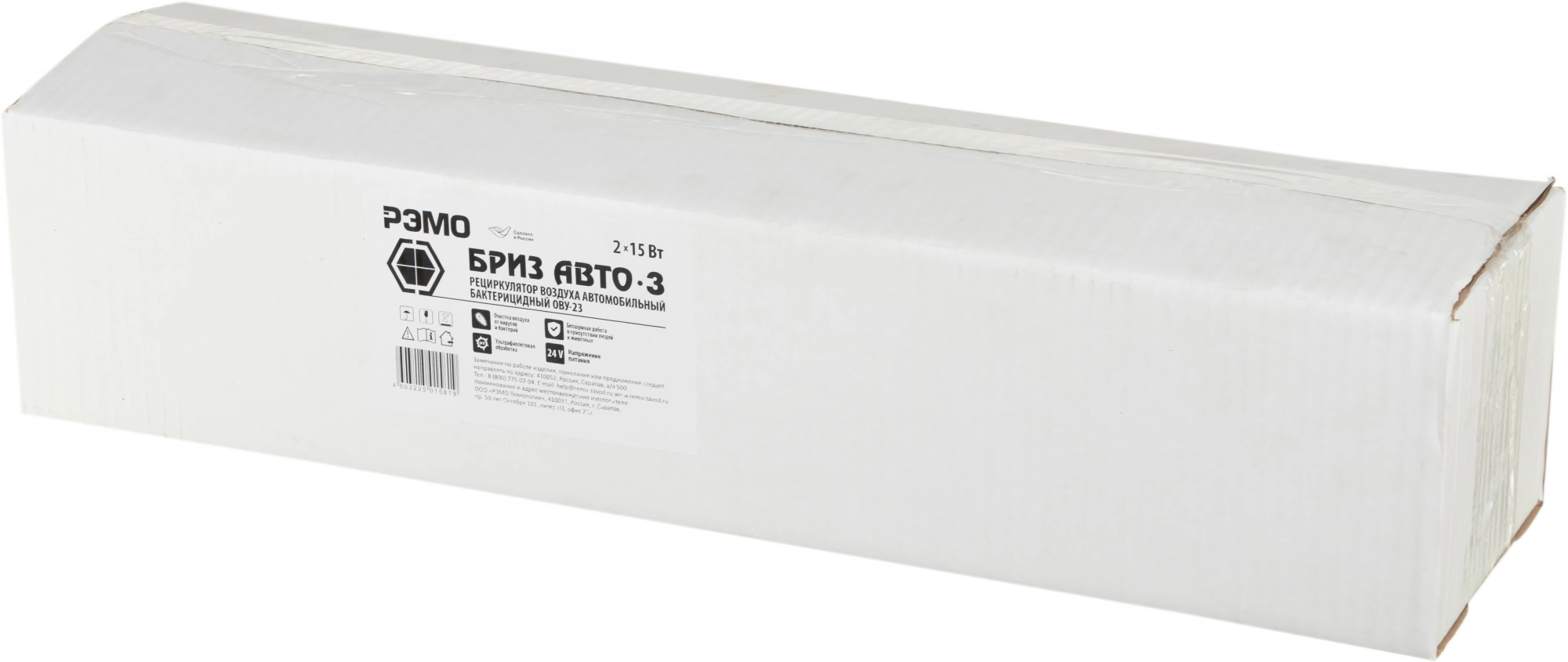 Предназначен для работы во время движения автомобиля или на стоянке. Гарантирована безопасная работа в присутствии людей и домашних животных без ограничения по времени воздействия. 2 УФ лампы T8 /G13 по 15 Вт. Срок службы лампы 9000 часов. УФ-излучения 245-265 нм.