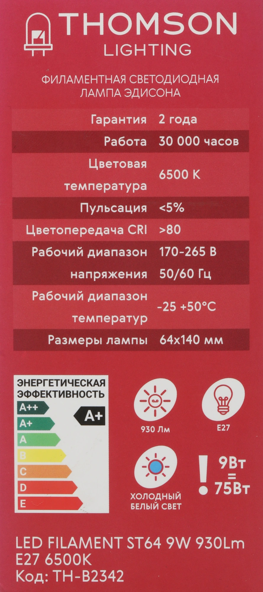 9Вт цок.:E27 эдисон 220B св.свеч.бел.хол. ST64 (у...