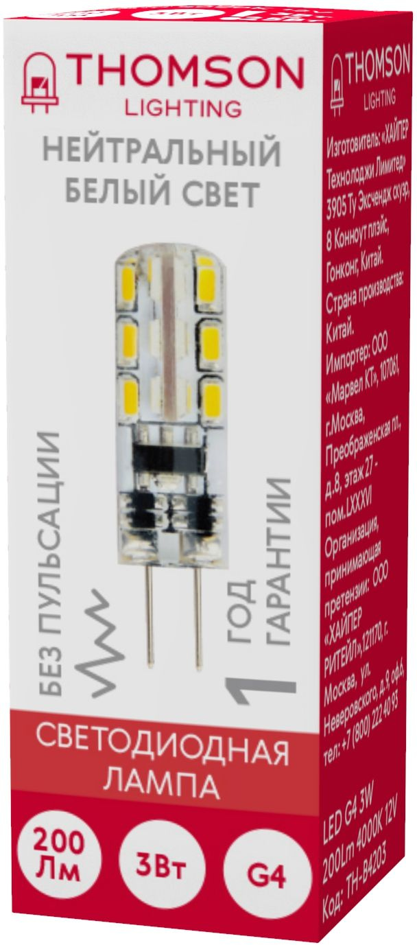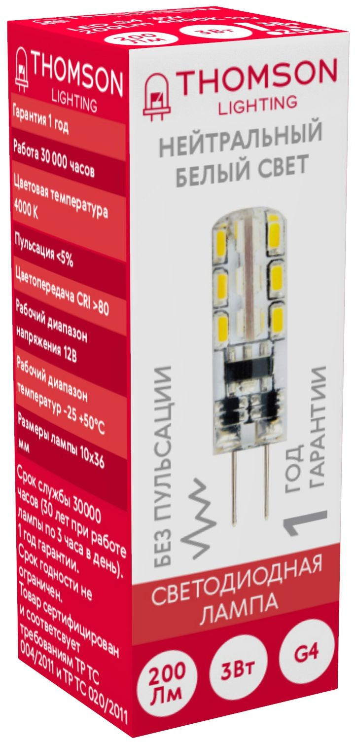 3Вт цок.:G4 капсул. 12B св.свеч.бел.нейт. (упак.:...