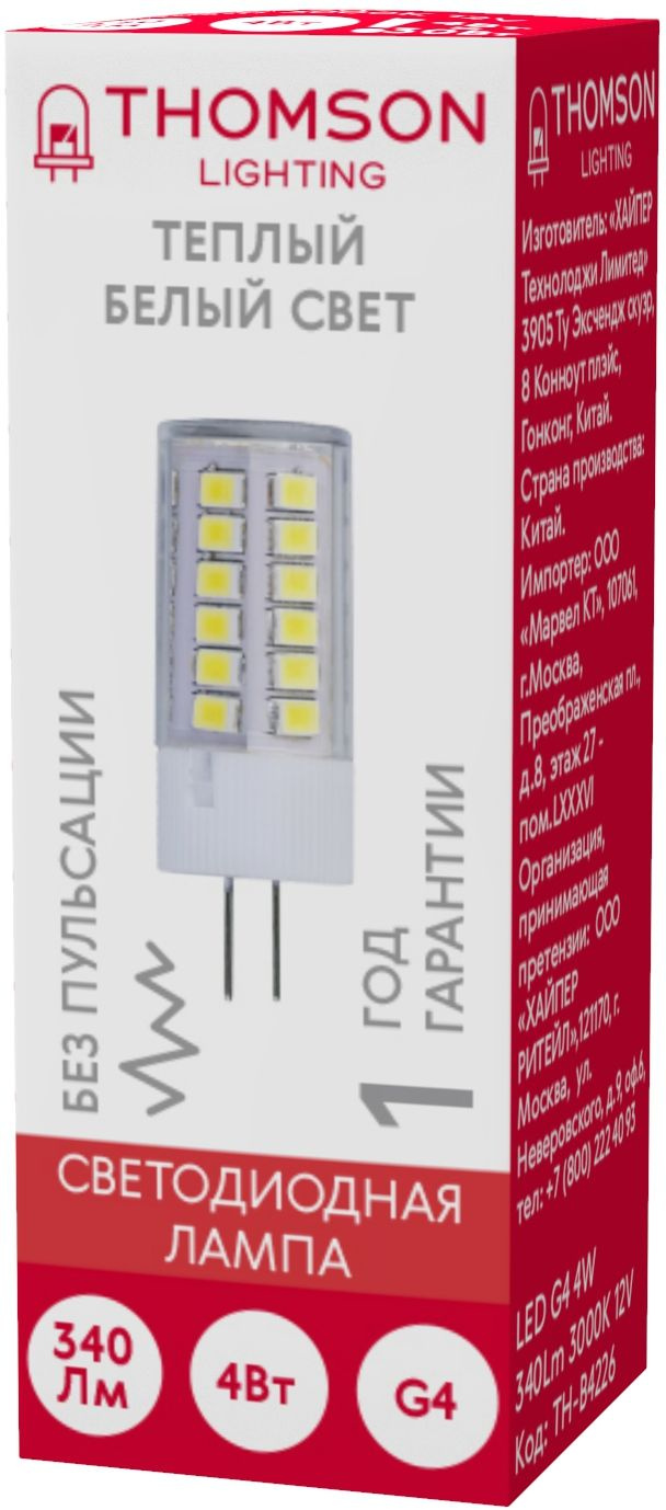 4Вт цок.:G4 капсул. 12B св.свеч.бел.теп. (упак.:1...