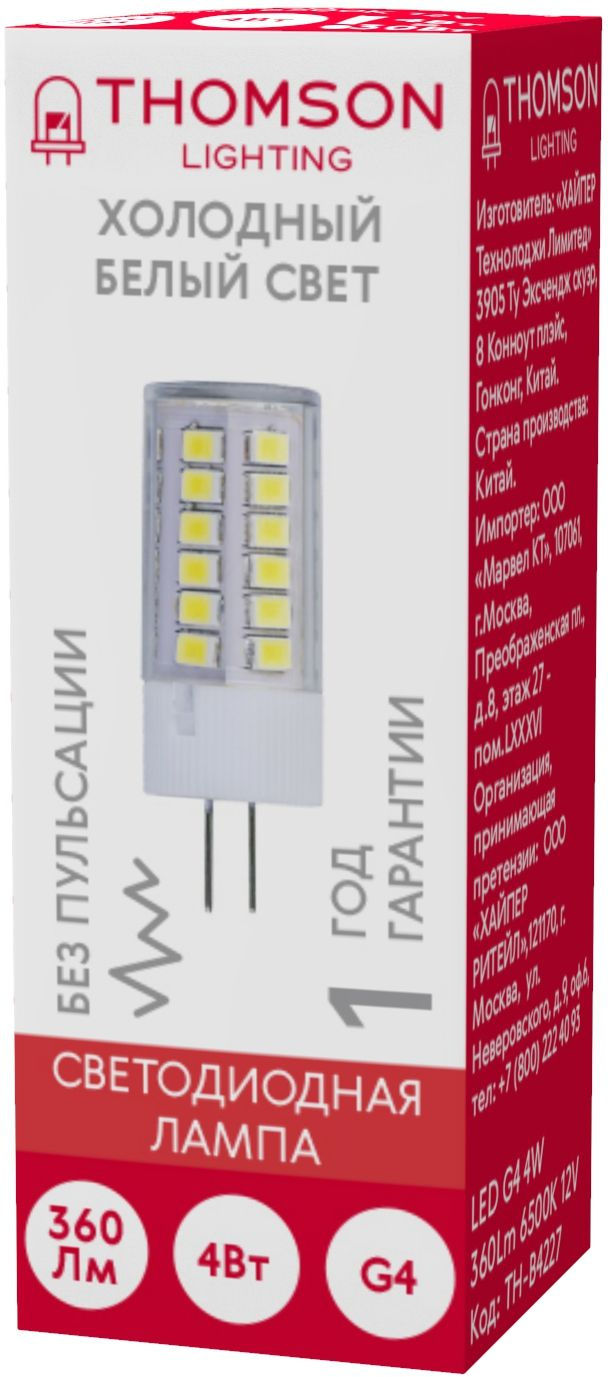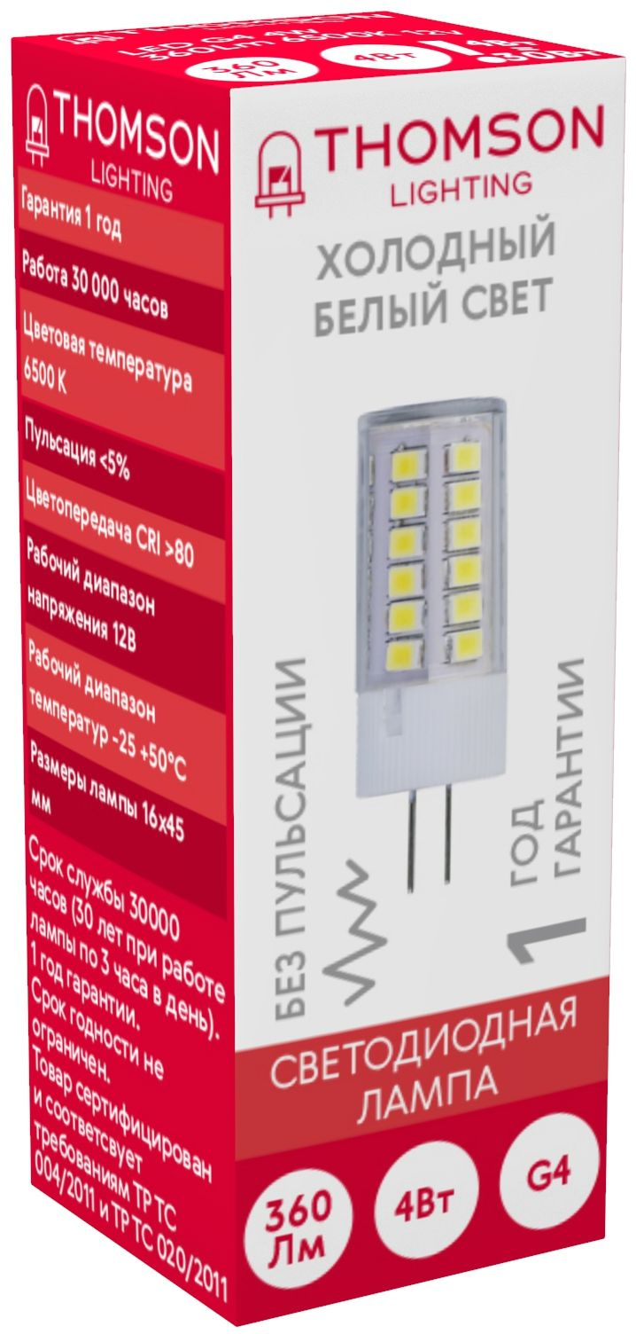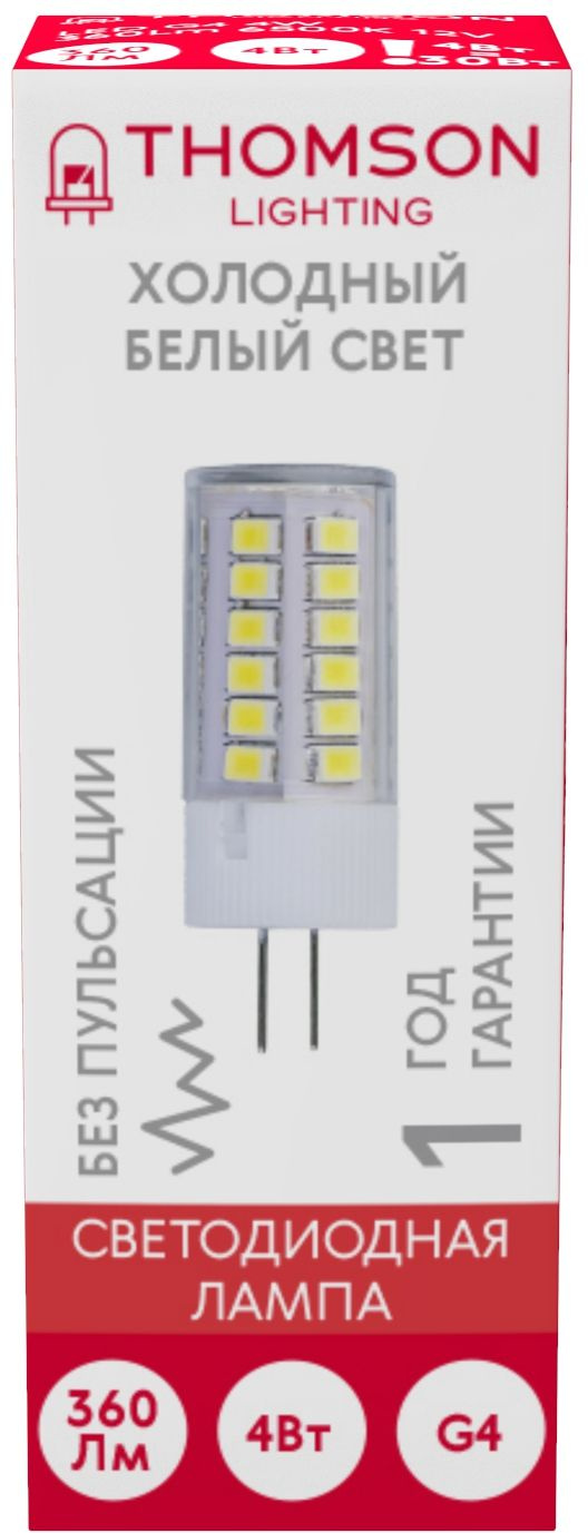 4Вт цок.:G4 капсул. 12B св.свеч.бел.хол. (упак.:1...