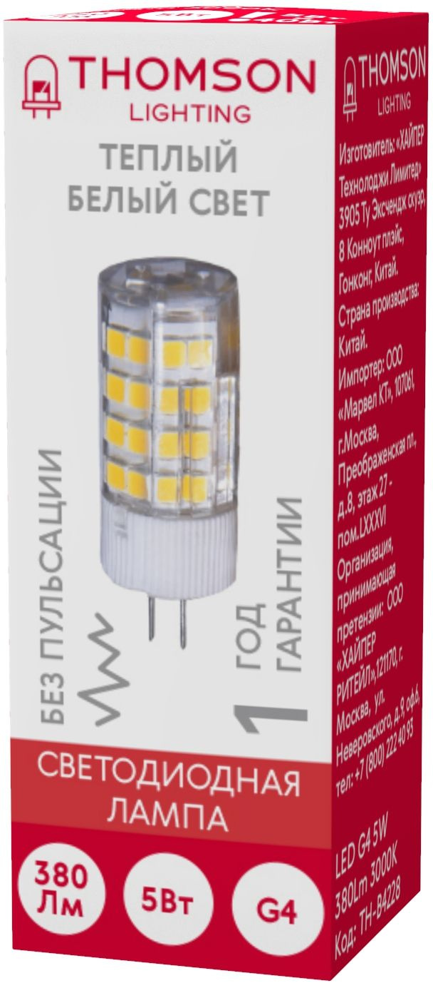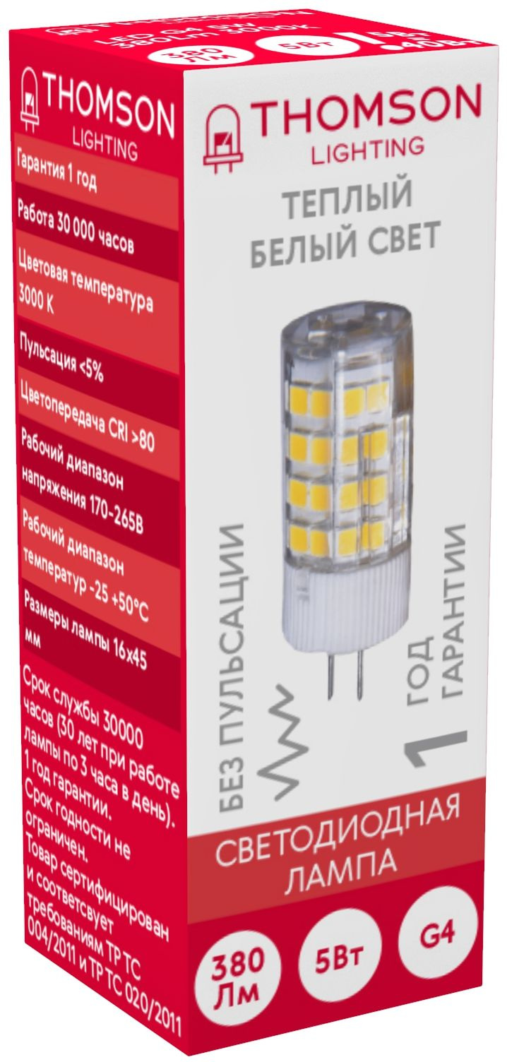 5Вт цок.:G4 капсул. 220B св.свеч.бел.теп. (упак.:...