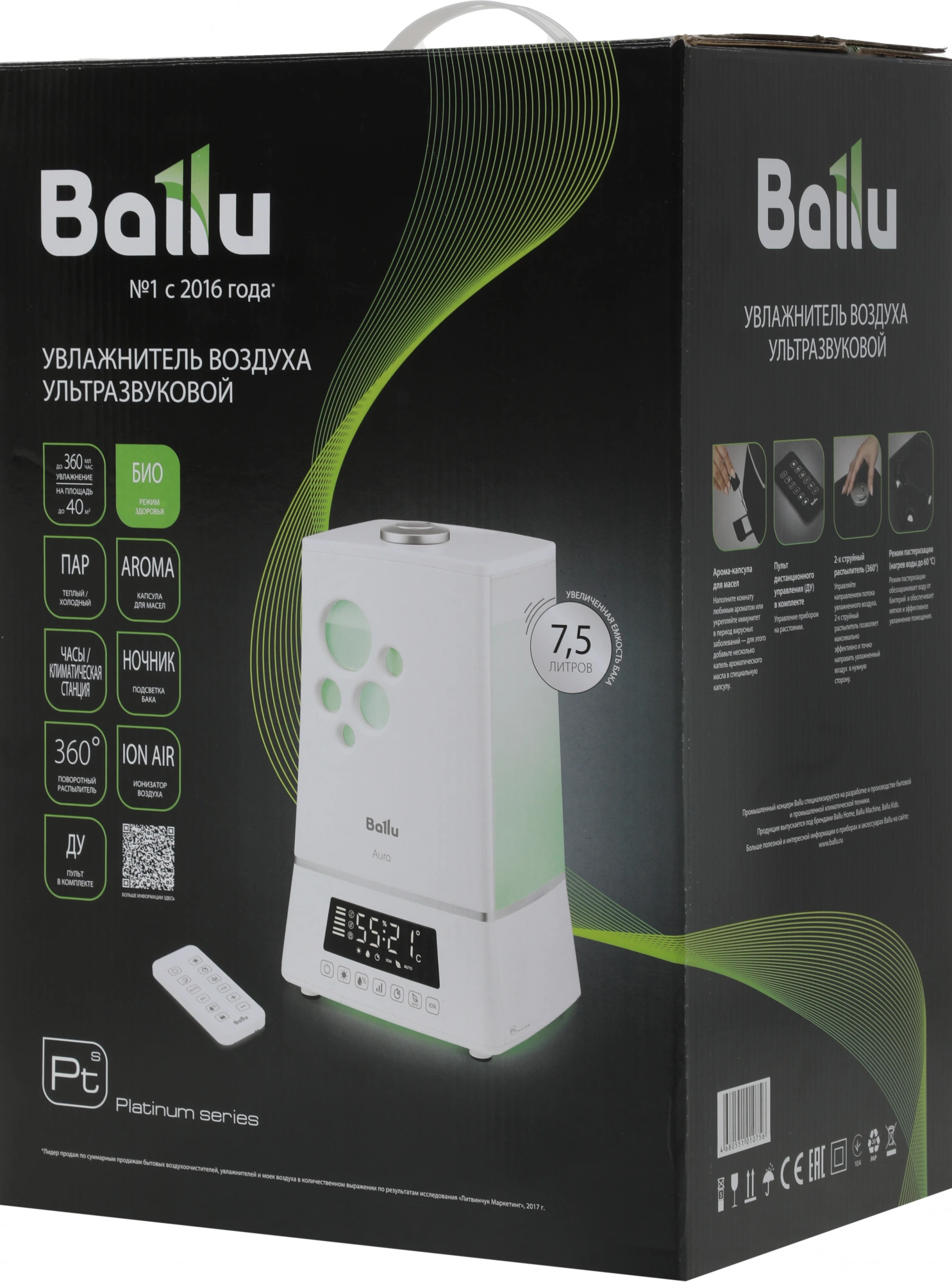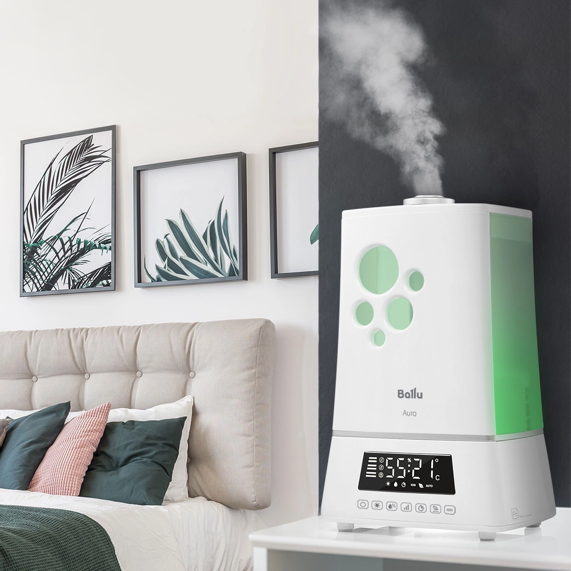 Аромакапсула для сеансов ароматерапии. Фильтр-картридж для умягчения воды в комплекте. Блокировка панели управления – защита от детей и от случайного сброса настроек. Интеллектуальные режимы работы: AUTO, BIO и Ночной. Съемный резервуар для воды.