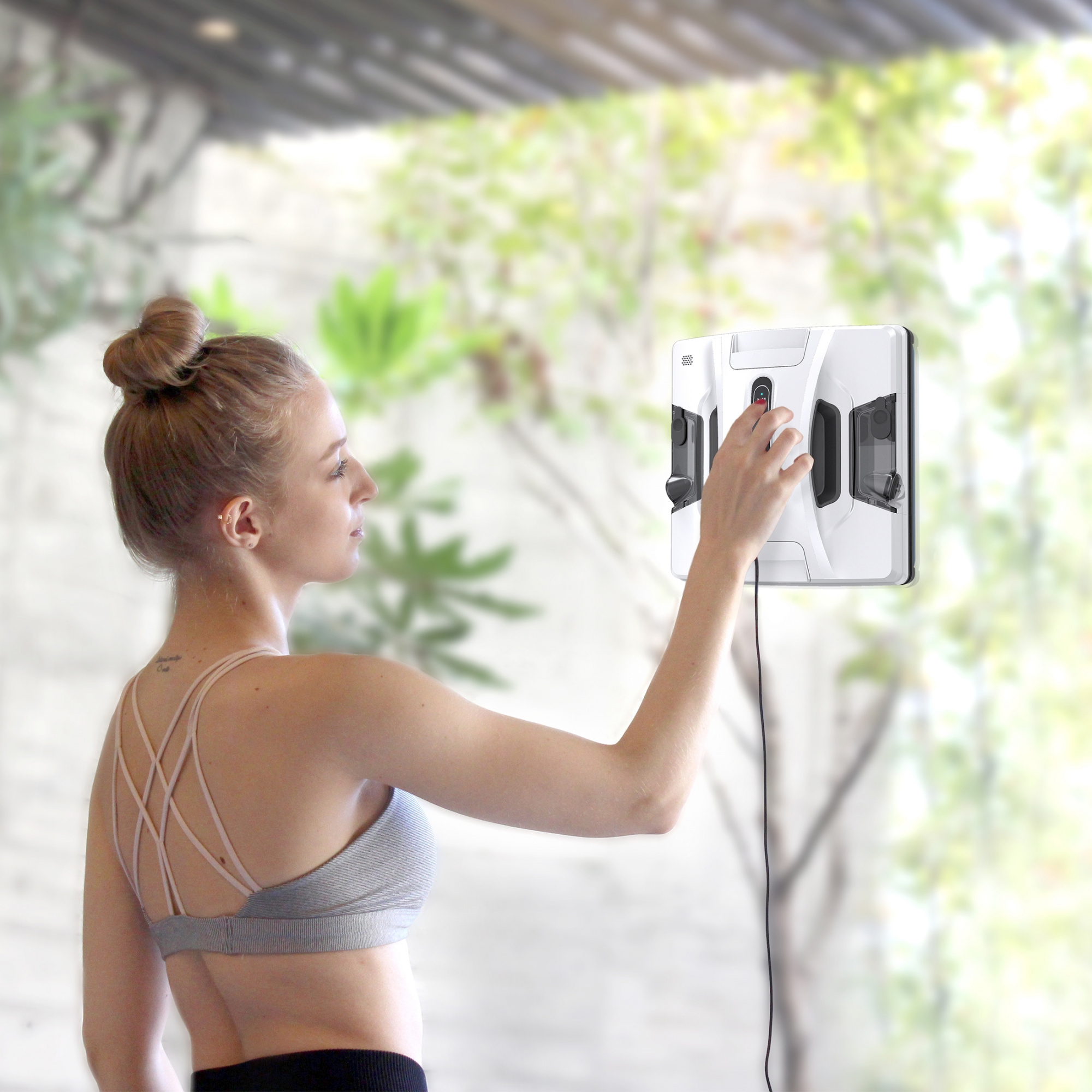 инверторный двигатель Nidec(пр-во Япония); подходит для любой толщины стекла; программа интеллектуальной очистки AI-Technology; два ультразвуковых разбрызгивателя Ultrasonic Spray; встроенный ИБП; приспособлен для использования на бескаркасных окнах; чистящие салфетки из микрофибры и др.