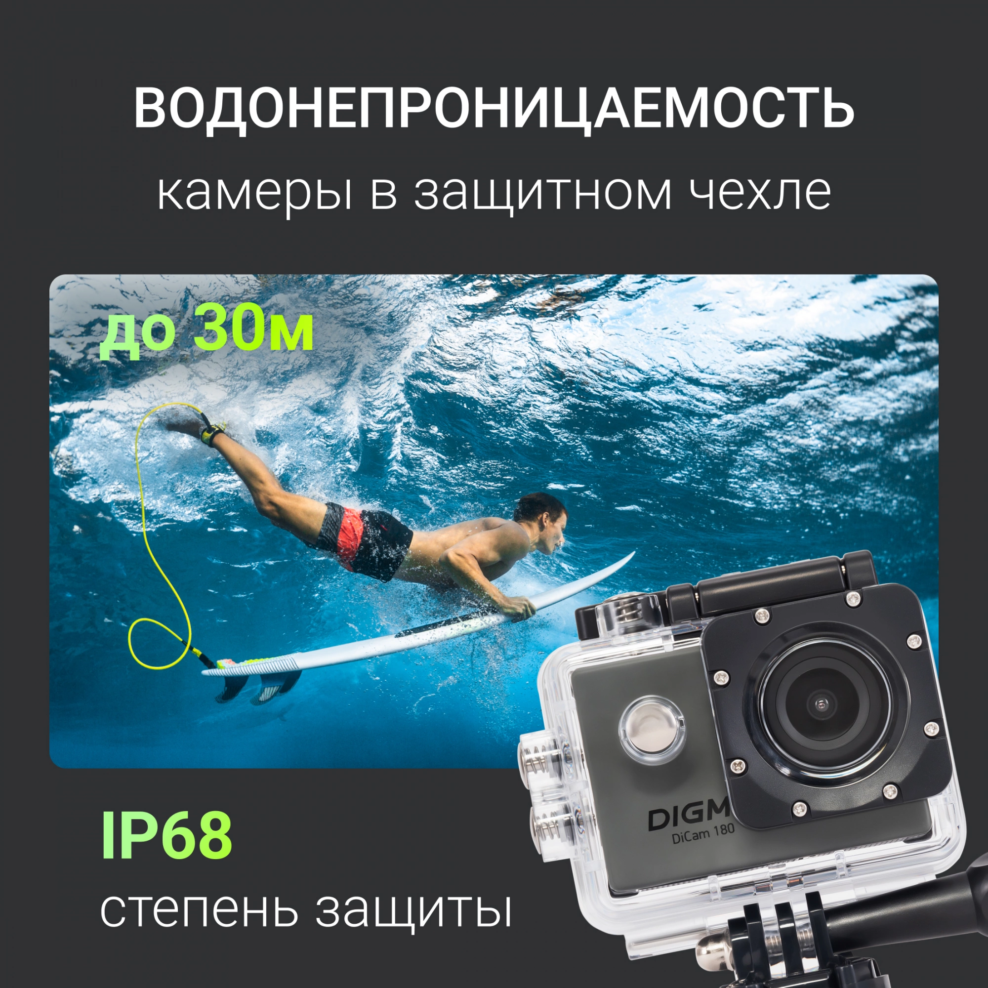 Экшен-камера Digma DiCam 180 – надежный гаджет для цифровой съемки. Камера с разрешением 12 Мп позволяет получать качественные снимки: доступны автоматический баланс и ручная регулировка белого для лучшей цветопередачи.