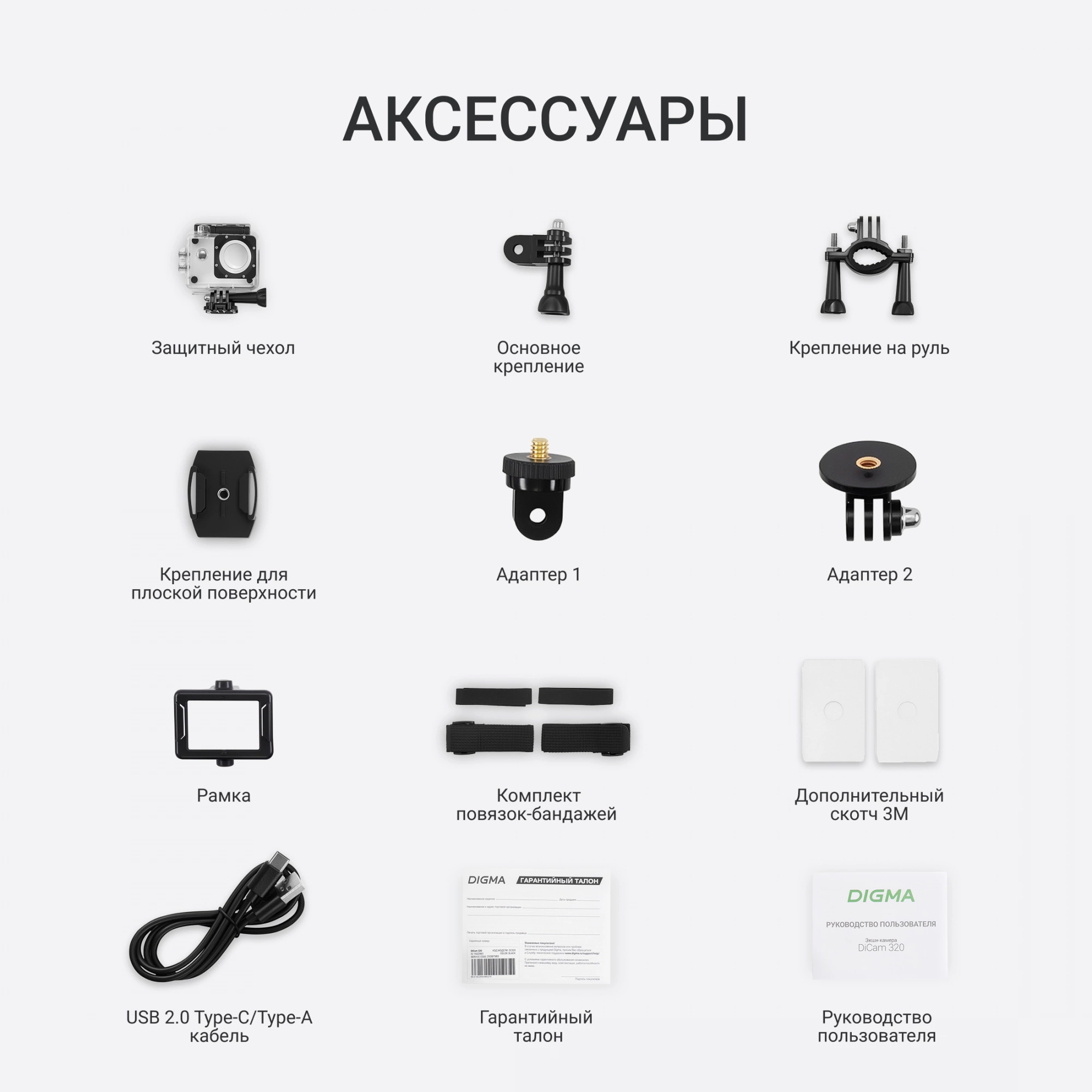 Экшен-камера Digma DiCam 320 поможет запечатлеть самые яркие моменты жизни. Источник питания – Li-lon аккумулятор емкостью 650 мАч для стабильной работы в бесперебойном автономном режиме.