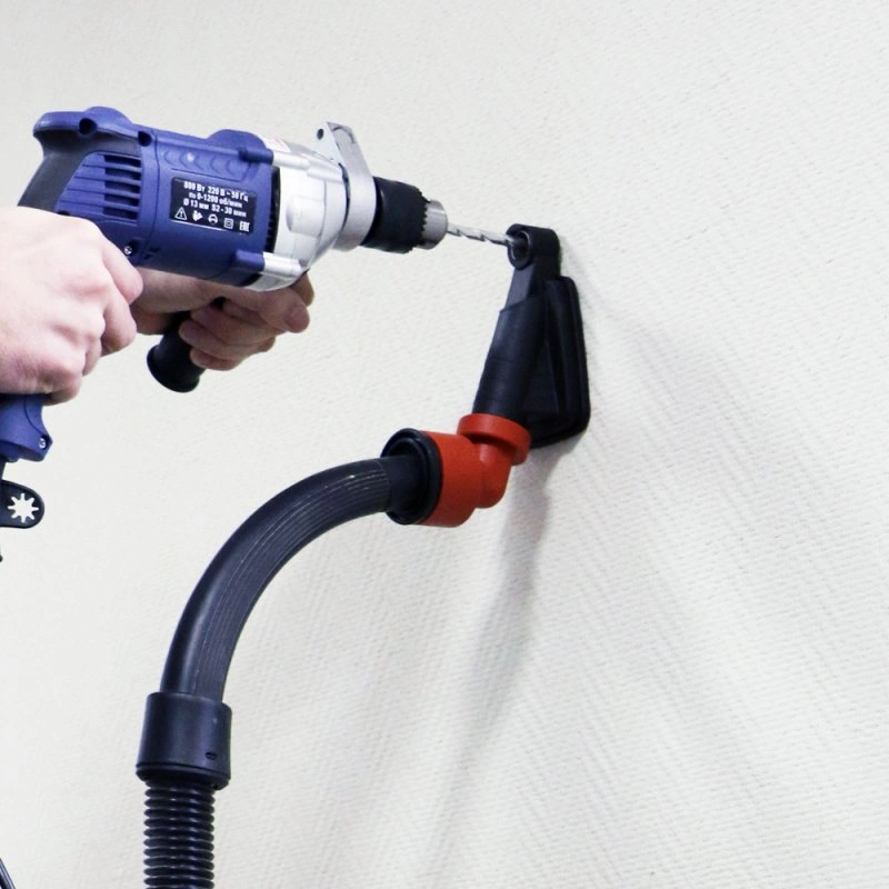 Насадка подходит к любому инструменту для сверления. Подключается напрямую к пылесосу. Насадку не нужно монтировать на инструмент, поэтому нет никакого дополнительного утяжеления. Стальная втулка вмещает сверла до 16 мм. Патрубок насадки совместим со шлангами пылесосов, диаметром от 27 до 39 мм.