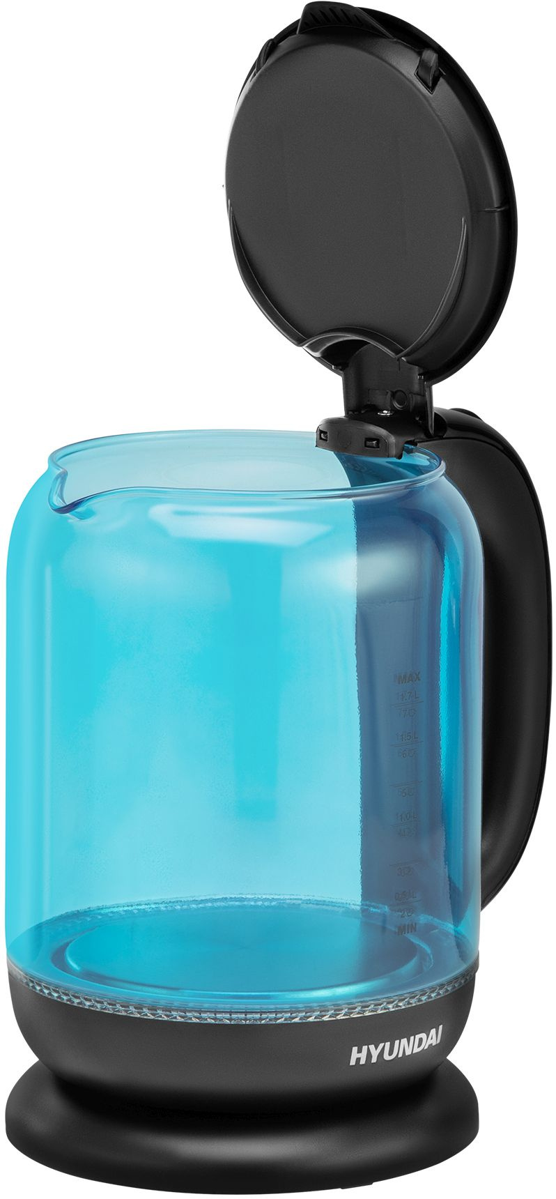 Скрытый нагревательный элемент чайника HYUNDAI HYK-G2806 позволит вскипятить даже небольшое количество воды. Всего его объём равен 1,8 литра, поэтому кипятка хватит на всех. А благодаря мощности 2200 Вт удастся нагреть воду максимально быстро. Корпус выполнен из жаропрочного стекла, которое окрашено в голубой цвет. Благодаря этому и подсветке прибор имеет интересный внешний вид. Индикация уровня воды и включения облегчает работу с устройством. Этой же цели способствуют кнопка для открывания крышки и удобная подставка с функцией вращения. Прибор защищен от включения без воды. Скрытый нагревательный элемент чайника HYUNDAI HYK-G2806 позволит вскипятить даже небольшое количество воды. Всего его объём равен 1,8 литра, поэтому кипятка хватит на всех. А благодаря мощности 2200 Вт удастся нагреть воду максимально быстро. Корпус выполнен из жаропрочного стекла, которое окрашено в голубой цвет. Благодаря этому и подсветке прибор имеет интересный внешний вид. Индикация уровня воды и включения облегчает работу с устройством. Этой же цели способствуют кнопка для открывания крышки и удобная подставка с функцией вращения. Прибор защищен от включения без воды.