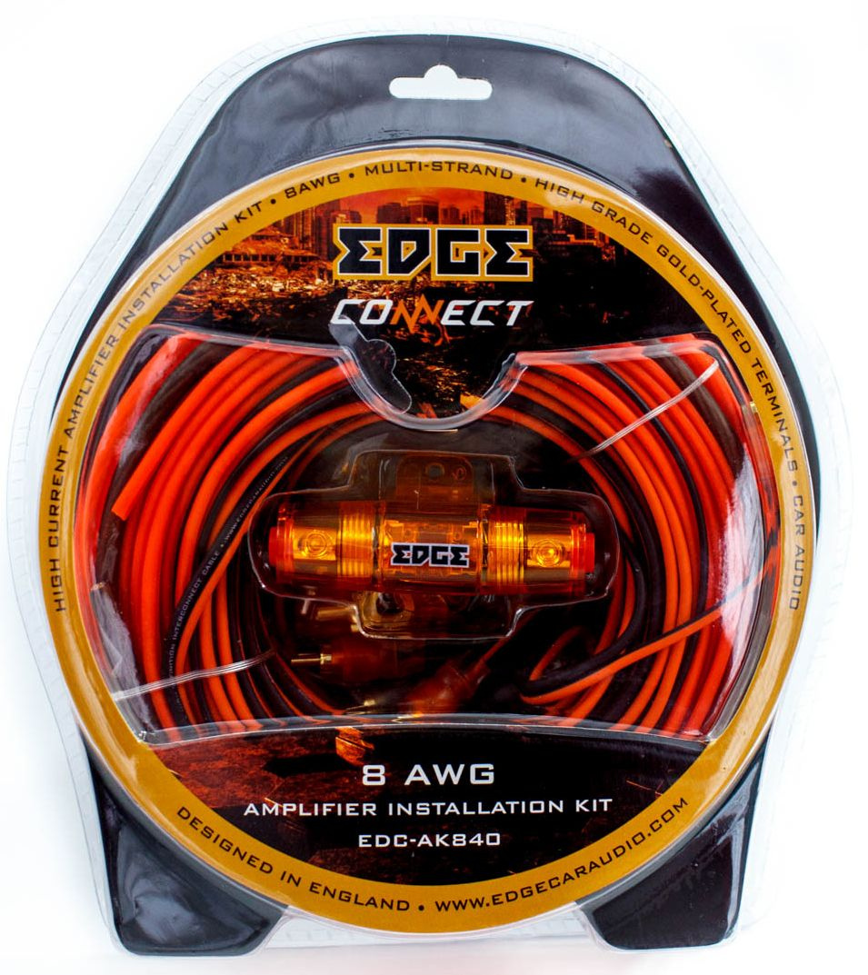 Кабель силовой (+) 8Ga - 5м; кабель силовой (-) 8Ga - 1м; акустический кабель 16Ga - 14м; управляющий кабель 18Ga - 5м; кабель 2RCA-2RCA, 5м - 2шт; держатель для предохр. Mini-ANL - 1шт; предохраниитель Mini-ANL; кольцо обжимное 8Ga - 2шт; вилки обжимные: 8Ga - 2шт, 16Ga - 9шт; трубка обжимная - 2шт