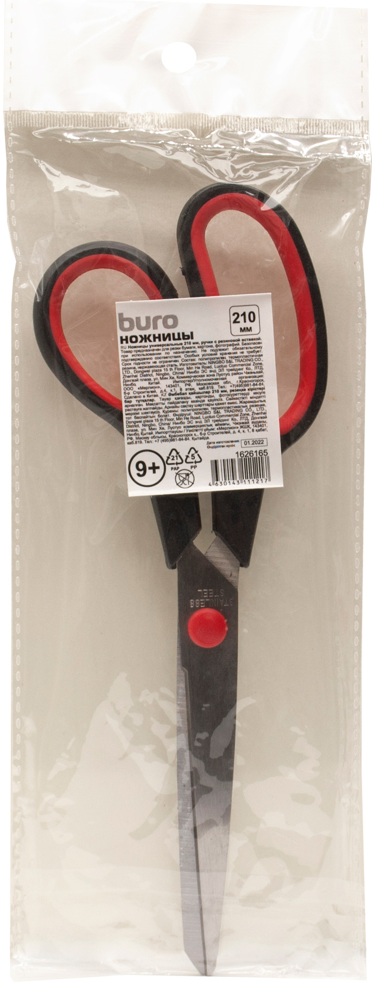 Ножницы Buro Ergo универсальные 210мм ручки с резиновой вставкой асим.