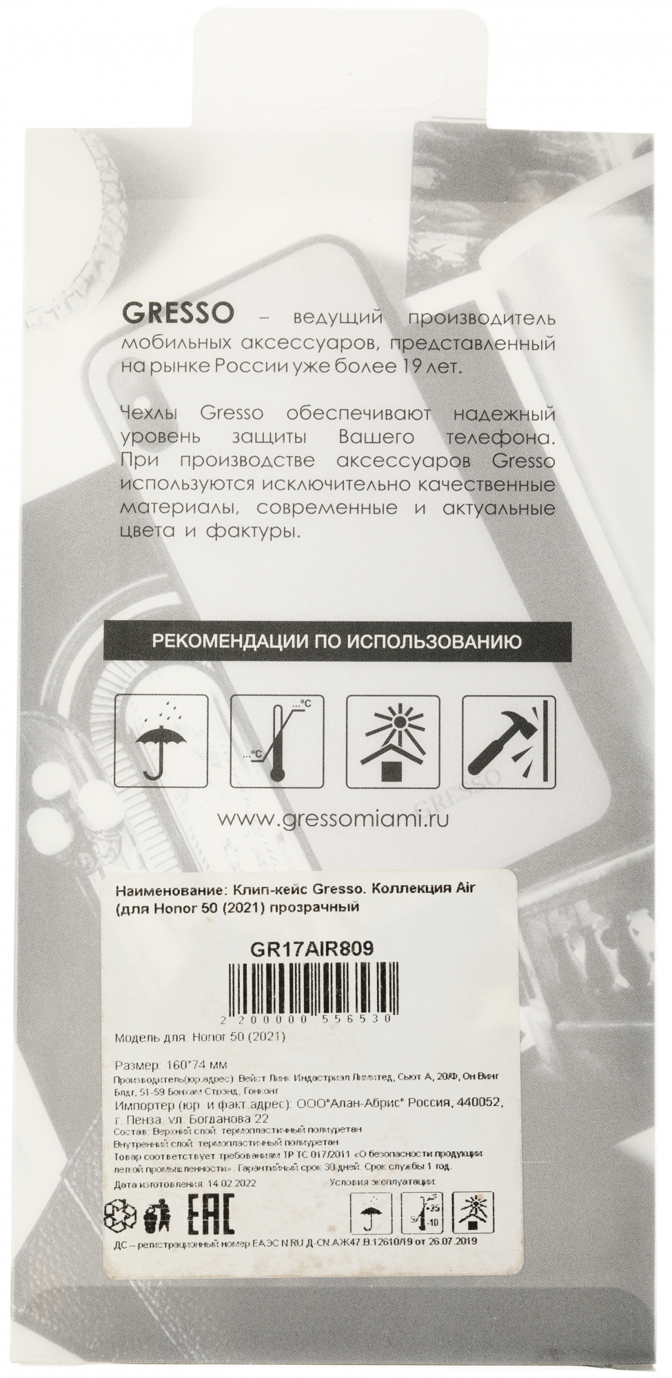 Прозрачный чехол Gresso для Honor 50 выполнен из силикона высокого качества, который не желтеет со временем. Панель плотно прилегает к телефону, защищая его от внешнего воздействия - пыли, грязи и царапин. Сохраняет дизайн смартфона и предотвращает его преждевременный износ.