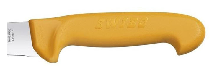Коллекция Swibo была создана, чтобы создать максимально возможную безопасность при работе с ножами на кухне. В оживленной рабочей среде ножи можно не заметить или использовать не по назначению, поэтому для рукоятей ножей из коллекции Swibo компания Victorinox выбрала. привлекающий к себе внимание, ярко оранжевый цвет. Для еще большей безопасности при работе ножом, рукоятка немного продлена на лезвие, что обеспечивает дополнительный контроль и точность резки, а острое полированное лезвие плавно разрезает все, что находится под ним. Это коллекция ножей ярко ориентирована на безопасность.