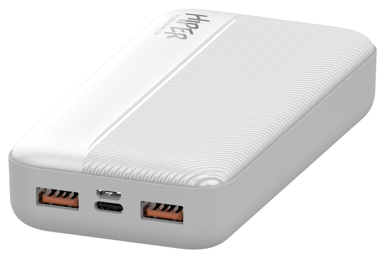 Портативный внешний аккумулятор емкостью 20000 мАч (74Втч) оснащён входом USB-C для зарядки, Micro-USB входом для зарядки, 2xUSB-A выходами, максимальный выходной ток 2,4А, максимальная мощность 12 Вт.