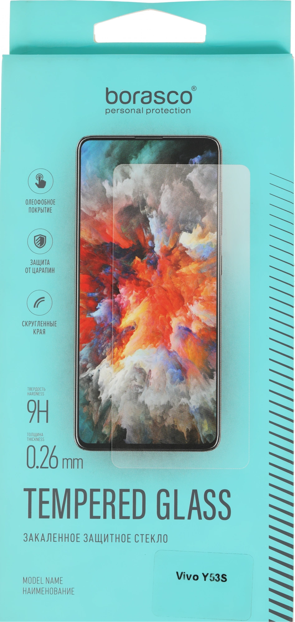 Закалённое стекло Borasco для Vivo Y53Sпредназначено для защиты экрана при падении, от царапин и потёртостей, олеофобное покрытие стекла передаёт приятные тактильные ощущения.