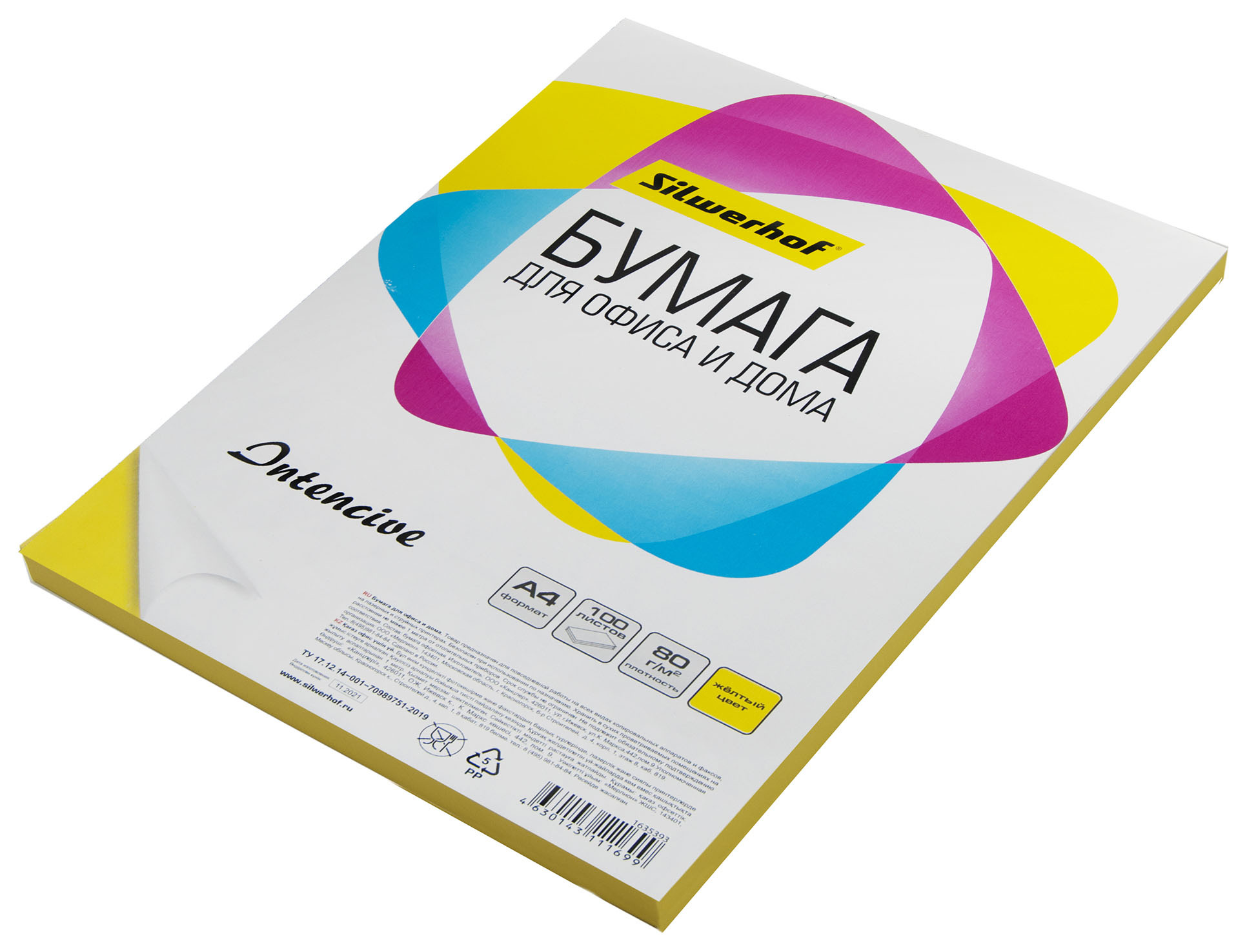 Бумага Silwerhof A4/80г/м2/100л./желтый интенсив общего назначения(офисная)