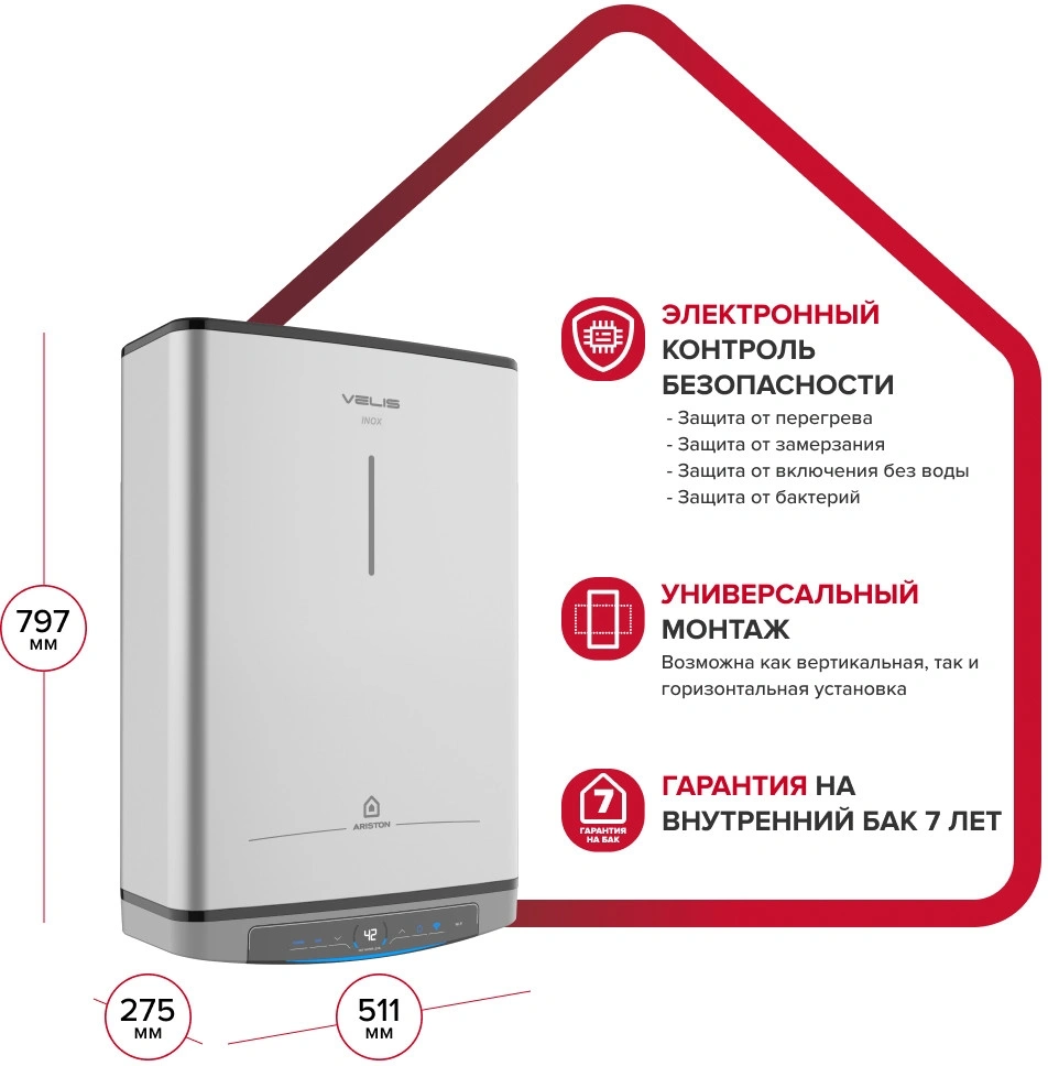 защита от включения без воды, магниевый анод увеличенного размера, предохранительный клапан, УЗО