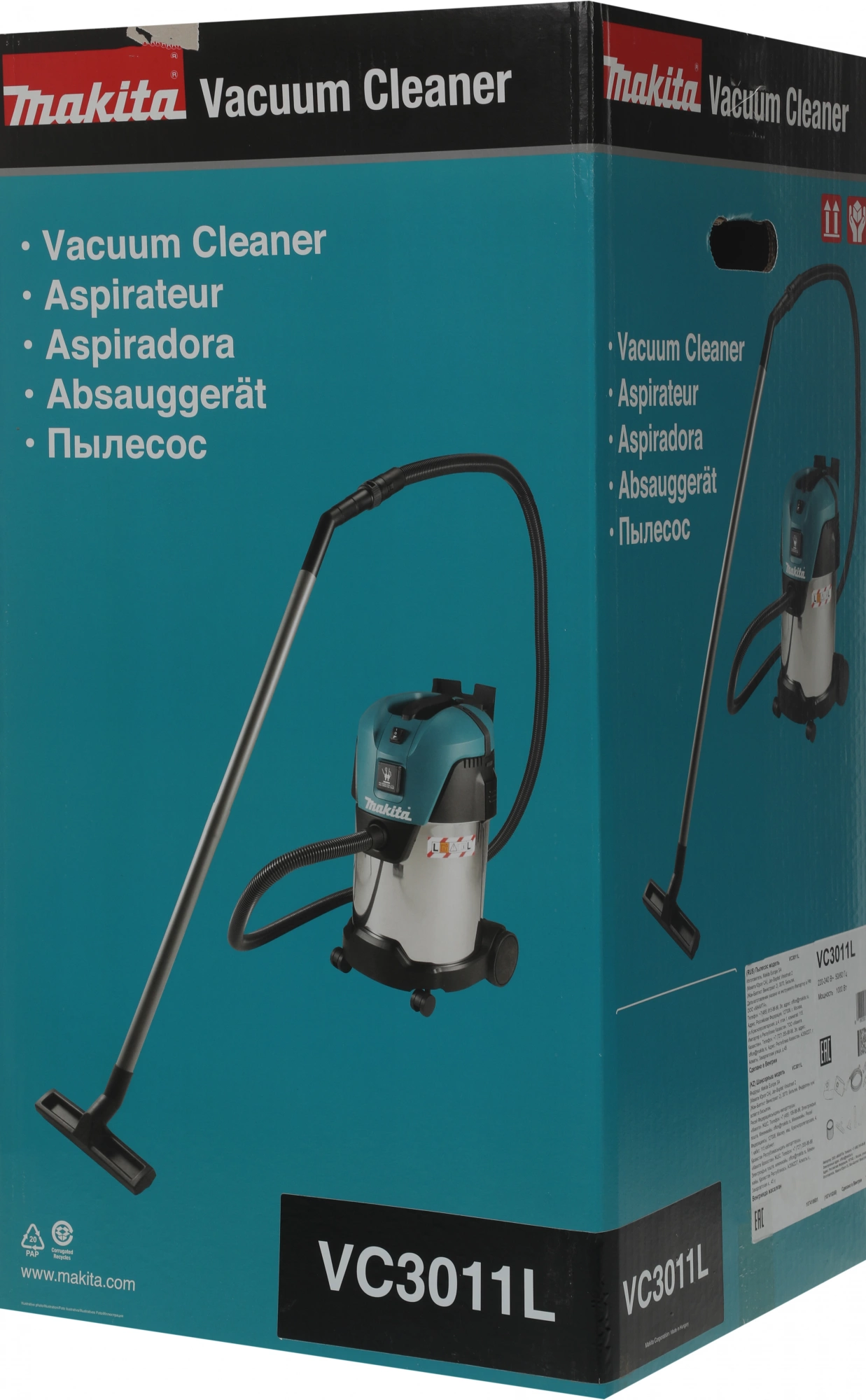 Четыре колеса - для маневренности. Автоматическое срабатывание пылесоса Makita VC3011L при включении инструмента.