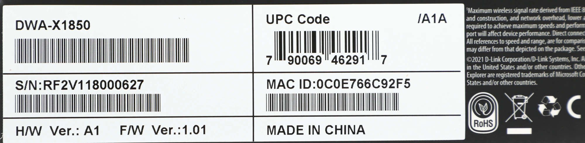 Сетевой адаптер Wi-Fi D-Link DWA-X1850
