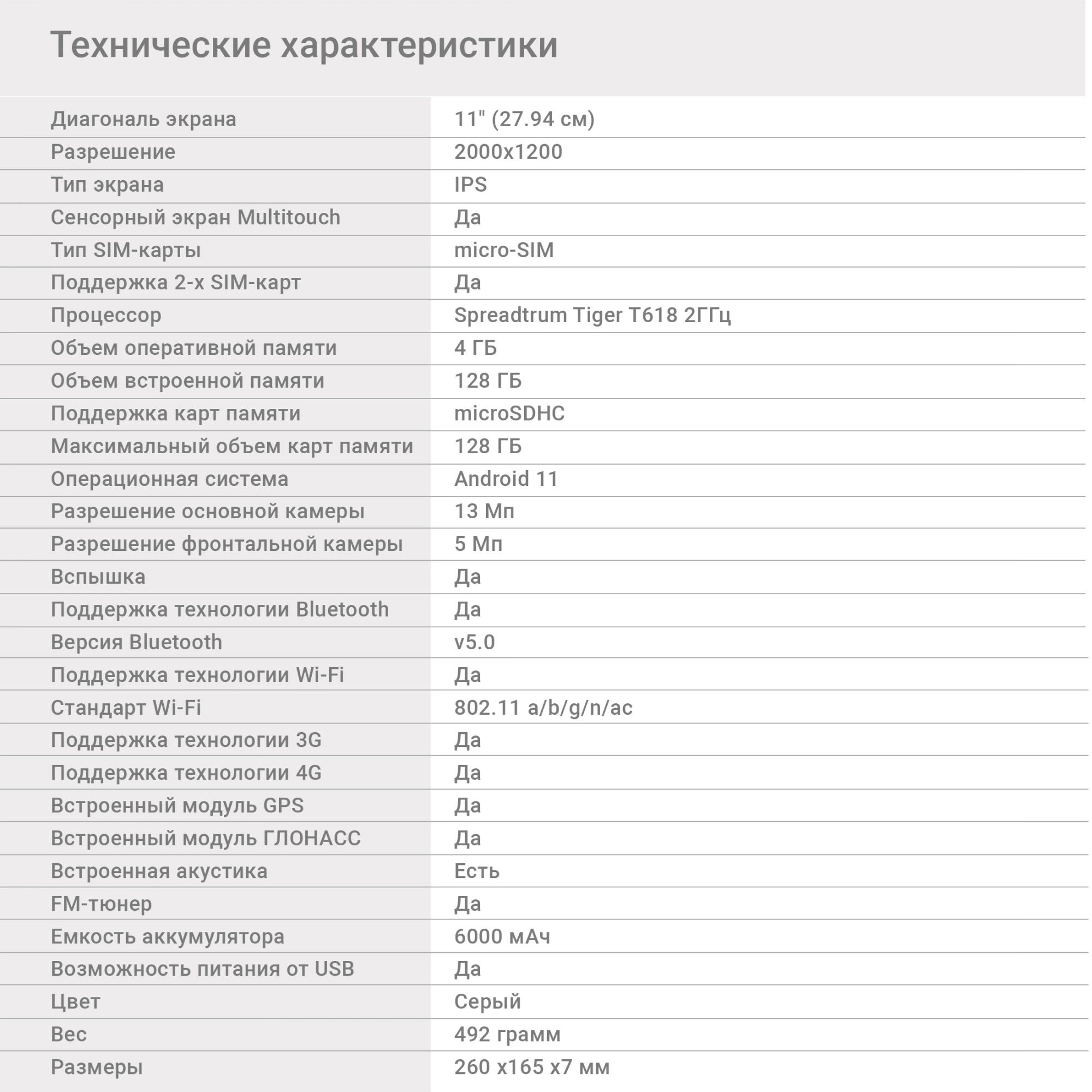 Tiger T618 (2.0) 8C RAM4Gb ROM128Gb 11" IPS 2000x1...