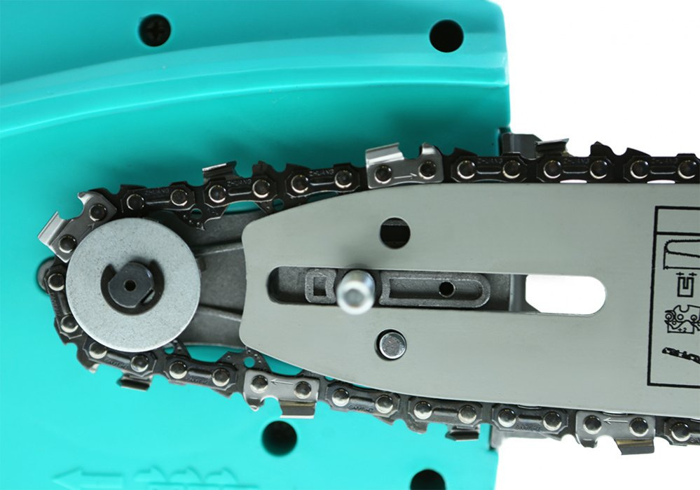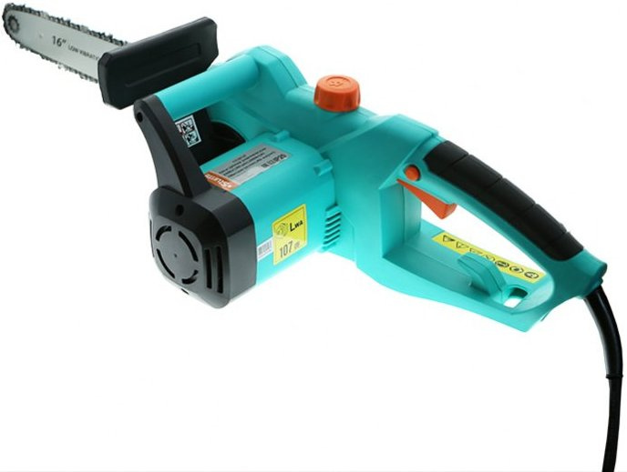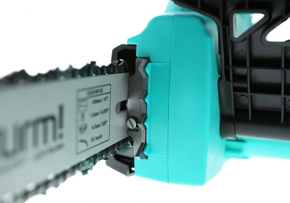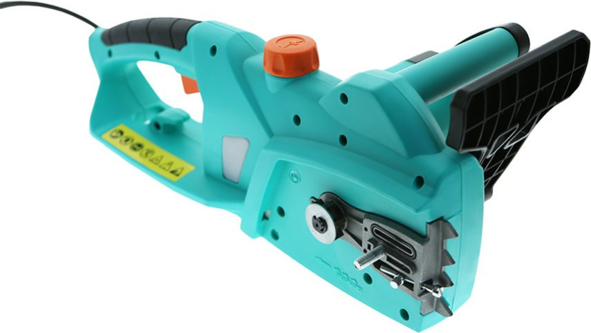 Электрическая цепная пила, шина цепной пилы, цепь, защитный кожух пильной шины.