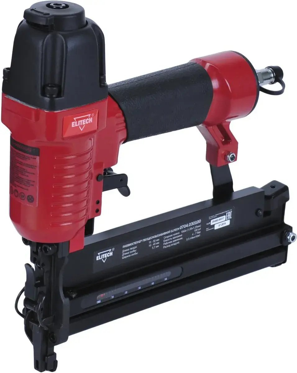 Длина гвоздя, мм.: 15-50. Сечение ножки: 18Ga (1.05х1.25 мм.). Емкость магазина, шт.: 100. Расход воздуха, л/выстрел: 0.5. Размер скобы, мм:. 16-40х5.7.