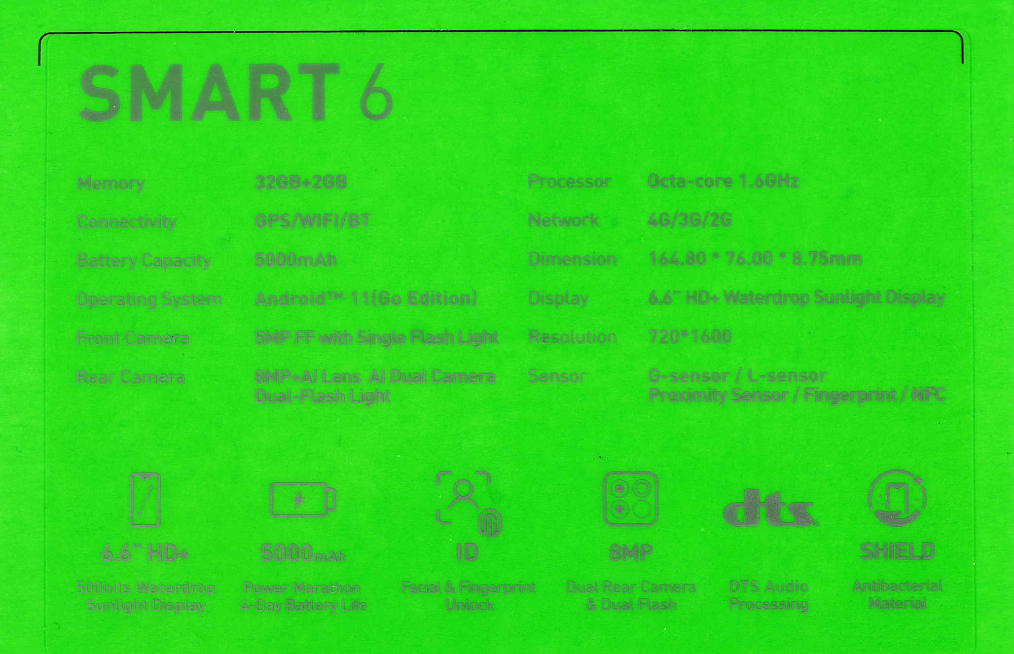 Smart 6 32Gb 2Gb черный моноблок 3G 4G 2Sim 6.6" 7...
