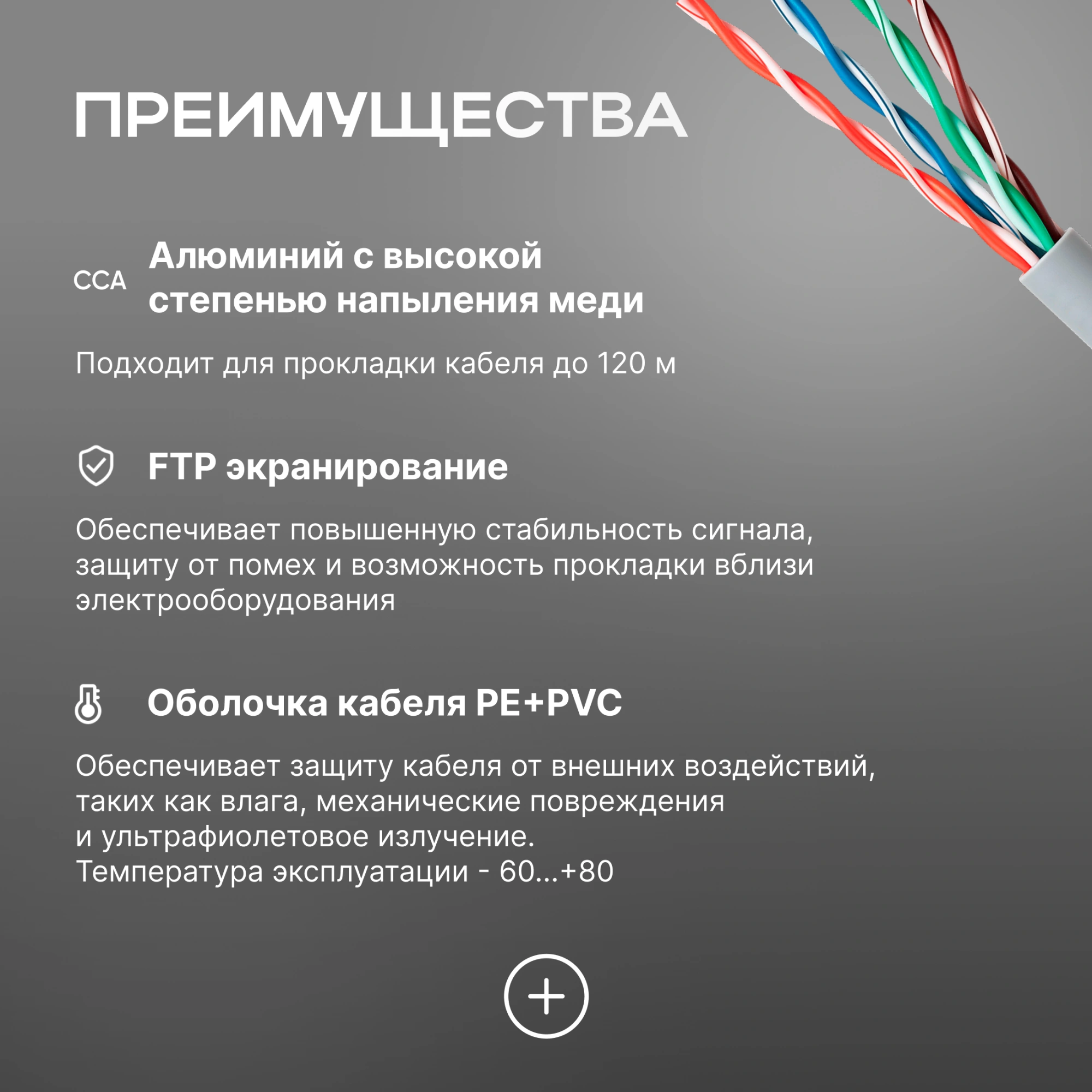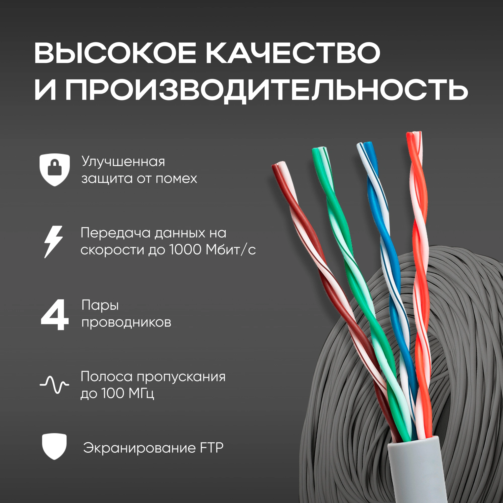 Кабель сетевой Ningbo FTP 4 пары cat.5E solid 0.5мм CCA molded 305м серый