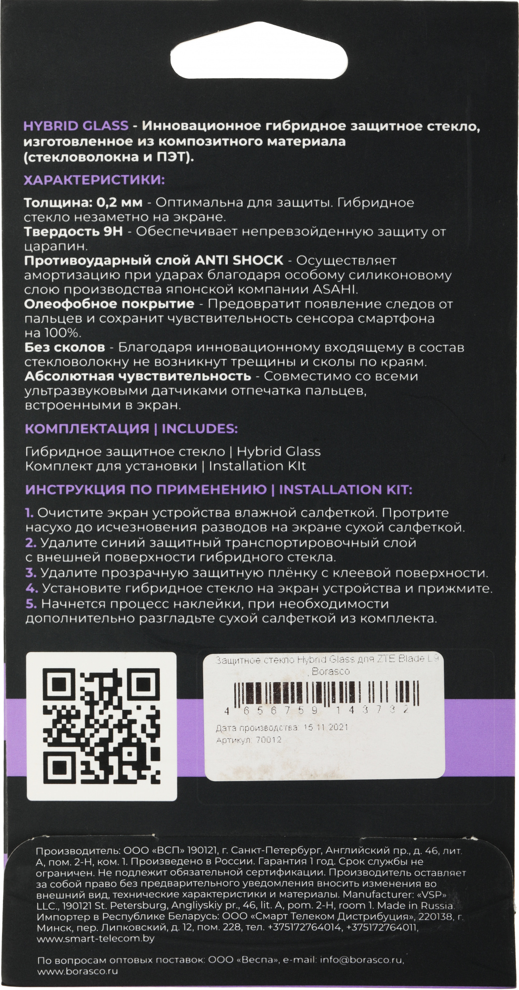 Гибридное стекло HYBRID GLASS предназанчено для защиты экрана ZTE Blade L9 от царапин. толщина 0,2 мм, наличие слоя Antishok, олеофобное покрытие.