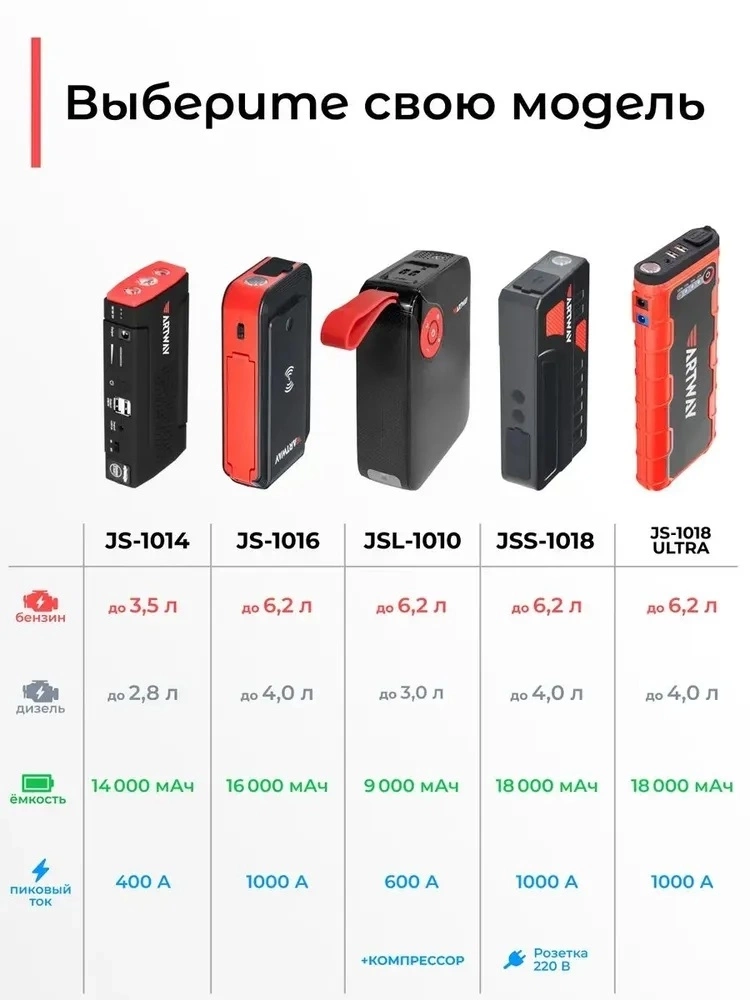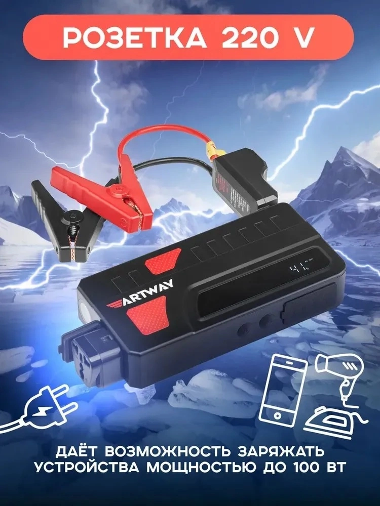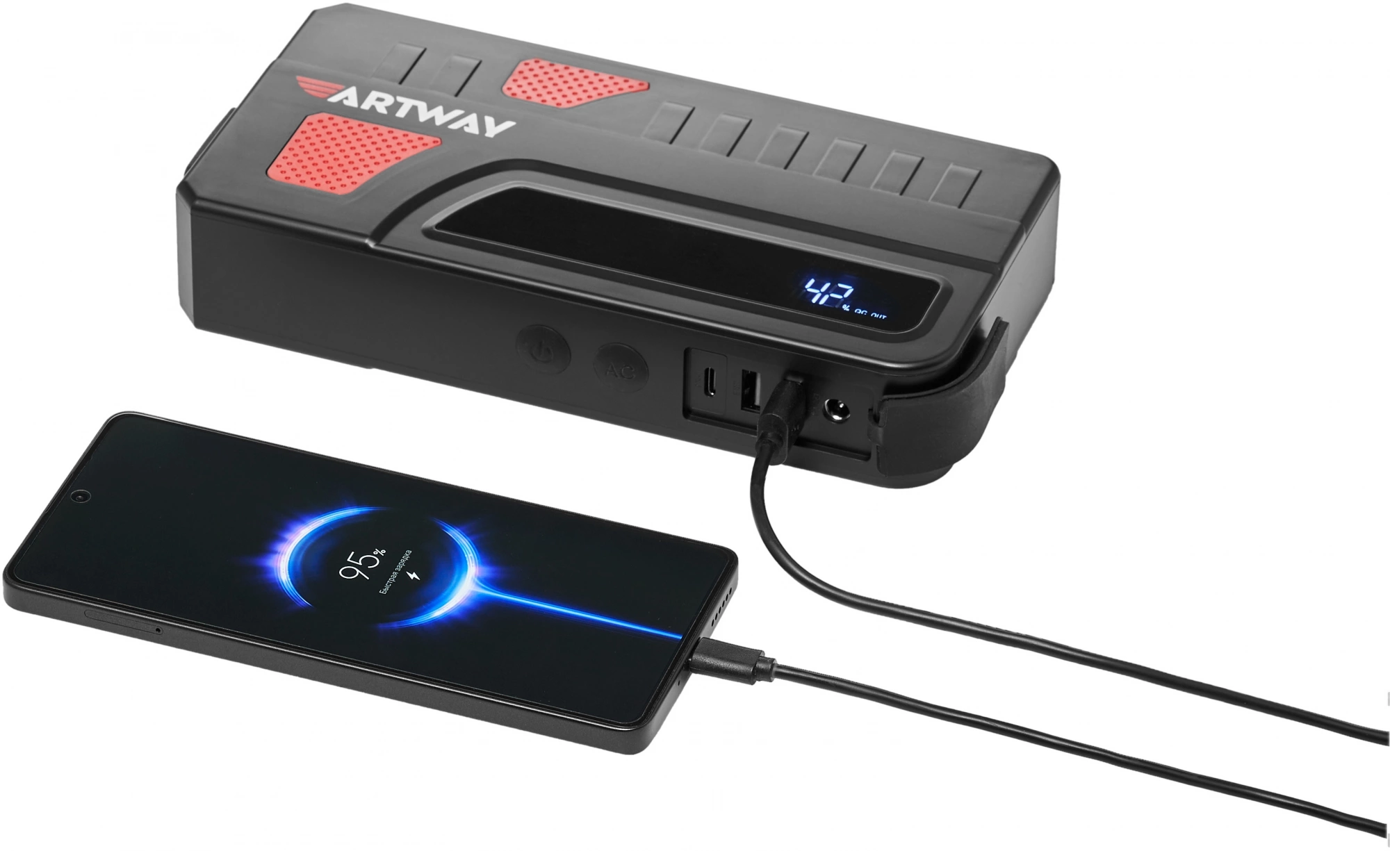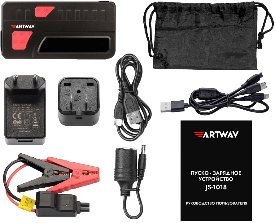 Artway JSS-1018 устройство, позволяющее произвести запуск двигателя автомобиля, подзарядить гаджеты, а также служить полноценным источником питания.