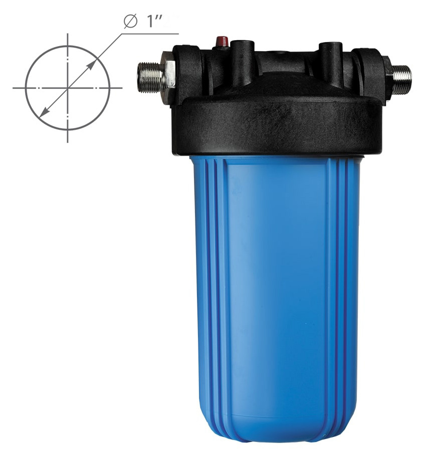 Корпус стандарта Big Blue 10" высокой производительности для холодной воды. Предназначен для использования в качестве магистрального фильтра. Резьба подключения 1".