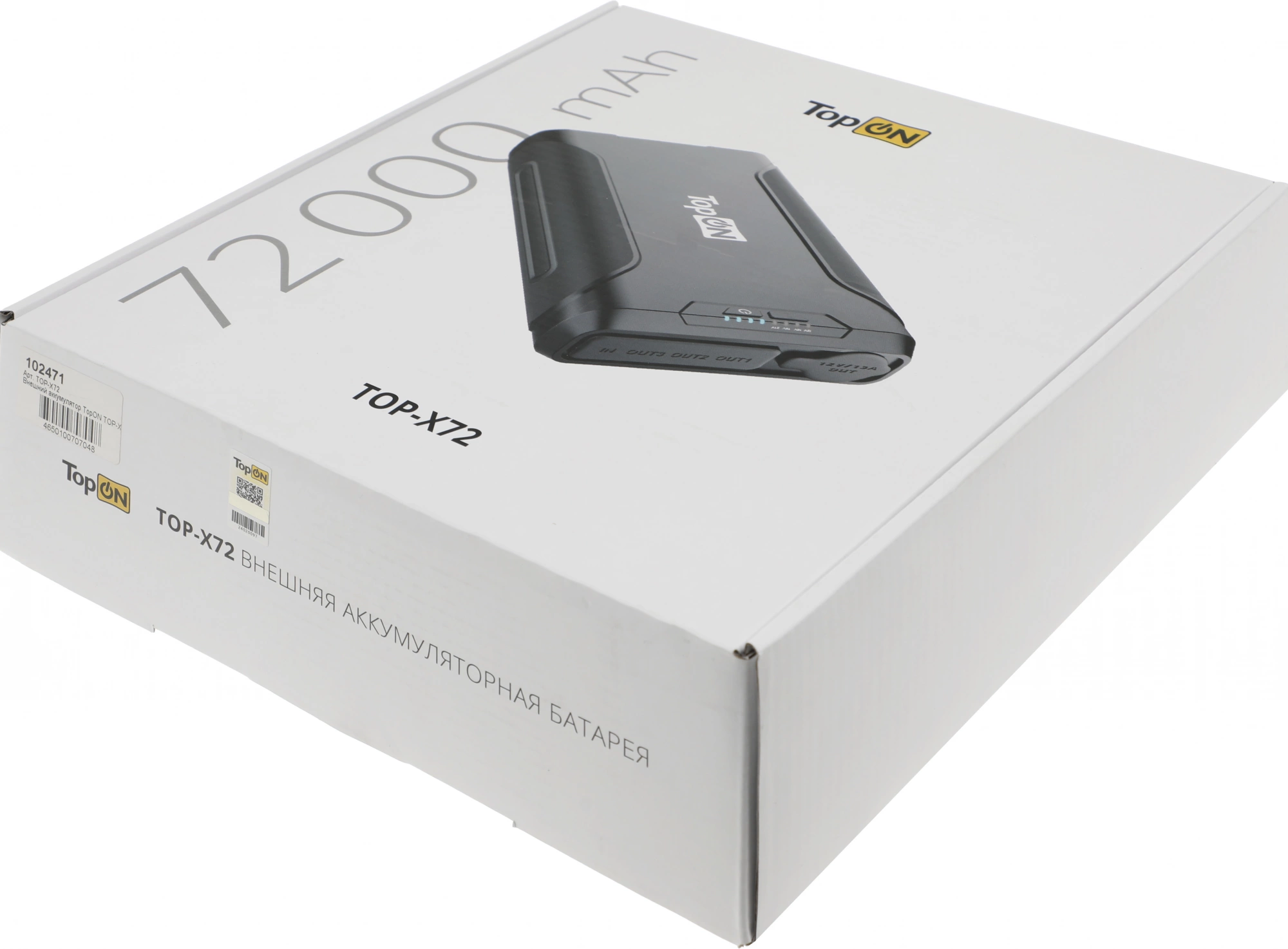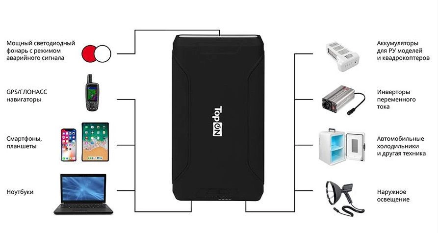 Внешний аккумулятор TopON 72000mAh 2 USB-порта, автомобильная розетка 180W, набор для зарядки ноутбуков, аварийный свет, фонарь. Возможность заряжать несколько устройств одновременно.Незаменим для кемпинга, походов, путешествий, охоты, рыбалки, длительных поездок.