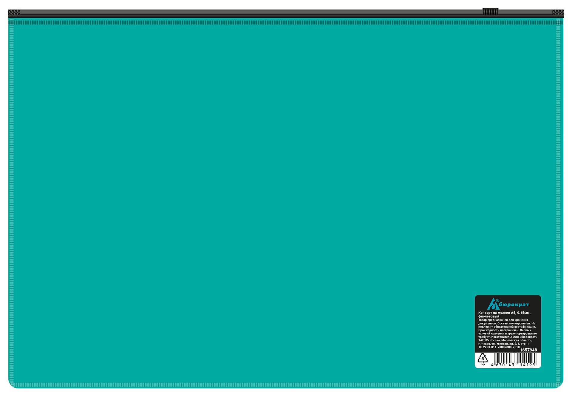 Папка на молнии ZIP Бюрократ -BPM4ATURGBL A4+ полипропилен 0.15мм бирюзовый цвет молнии черный