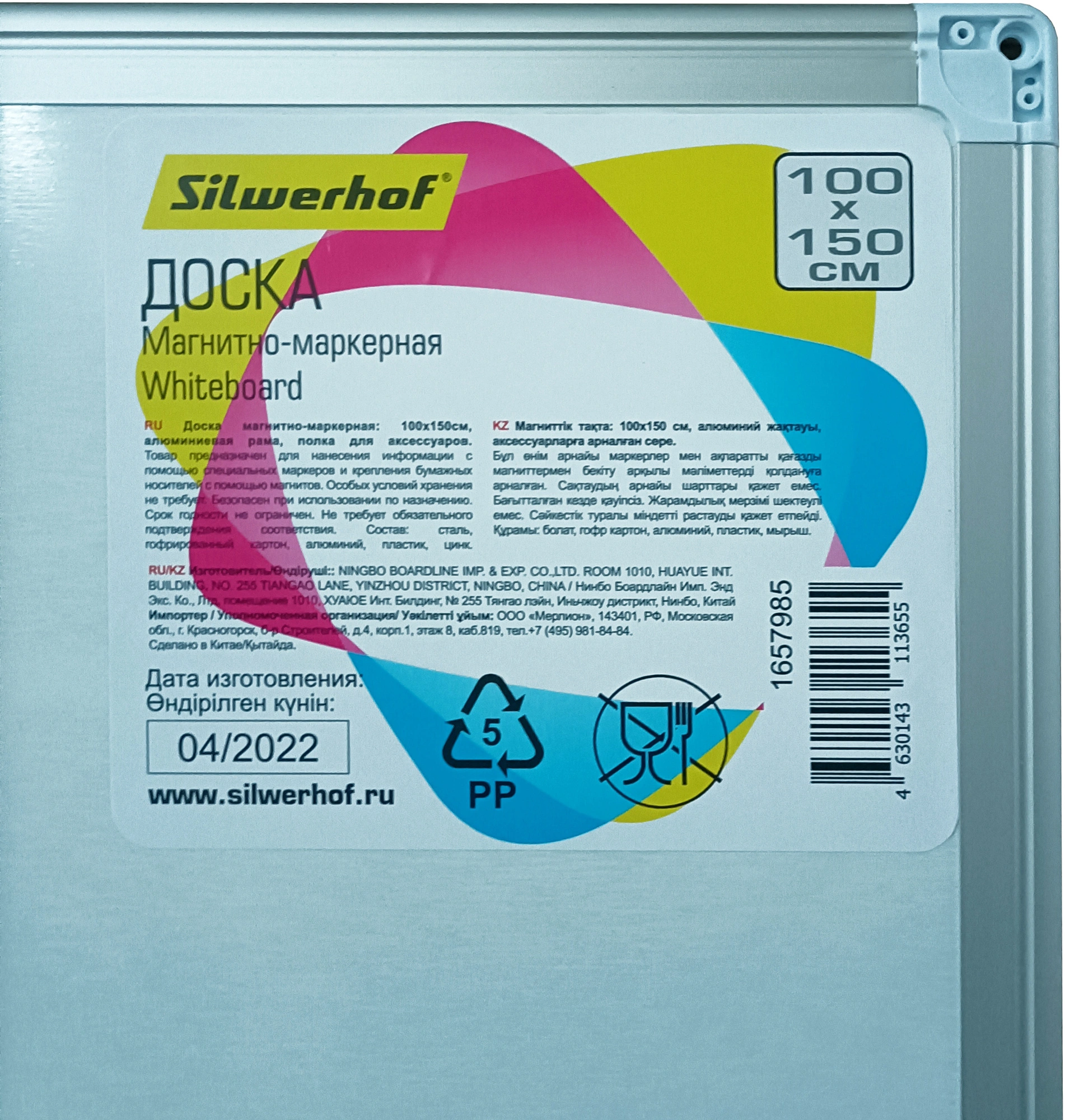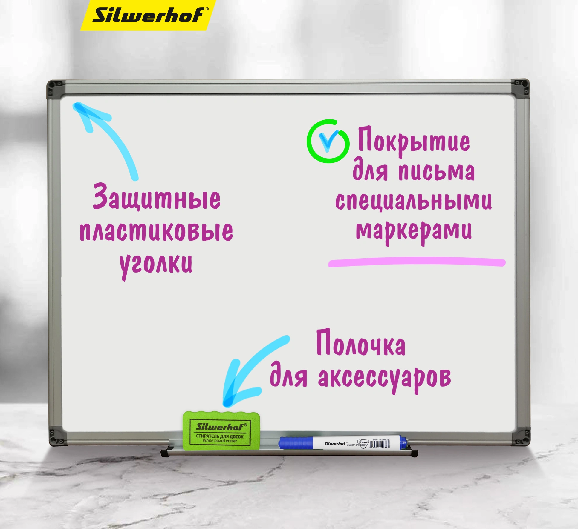 Доска магнитно-маркерная Silwerhof белый 100x150см алюминиевая рама лоток для аксессуаров