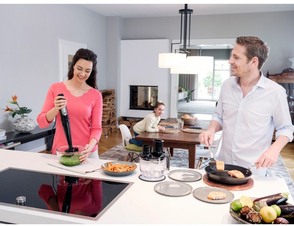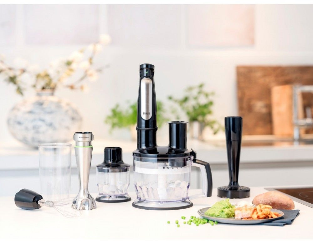 11 насадок в комплекте: Насадка кухонный комбайн 1500 мл, Нож для измельчения, Терка крупная, Терка мелкая, Шинковка крупная, Нарезка соломкой, Насадка для картофеля-фри, Насадка для густого теста, Насадка-измельчитель 350 мл, Насадка-венчик для взбивания, Насадка для приготовления пюре