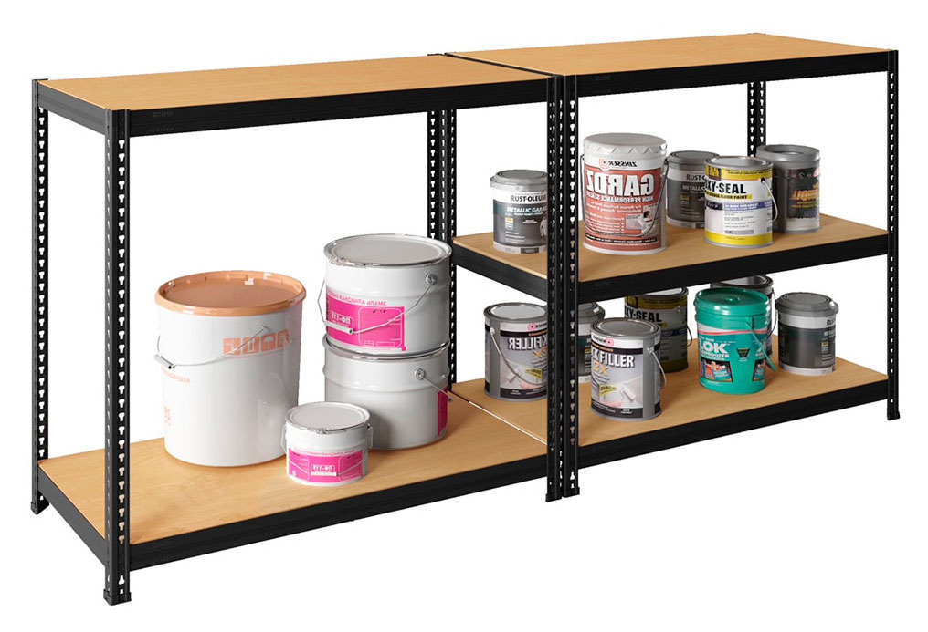Стеллаж универсального использования в офисе, дома, гараже или на складе. Регулируемые по высоте ярусы. Единая компактная упаковка. Быстрая и лёгкая сборка, без применения отверток и ключей. Сборно-разборная стойка. Максимальная нагрузка на ярус до 170 кг. Максимальная нагрузка на стеллаж до 750 кг. Настил ярусов ДВП. Окраска RAL 7016 муар. Несколько вариантов сборки.